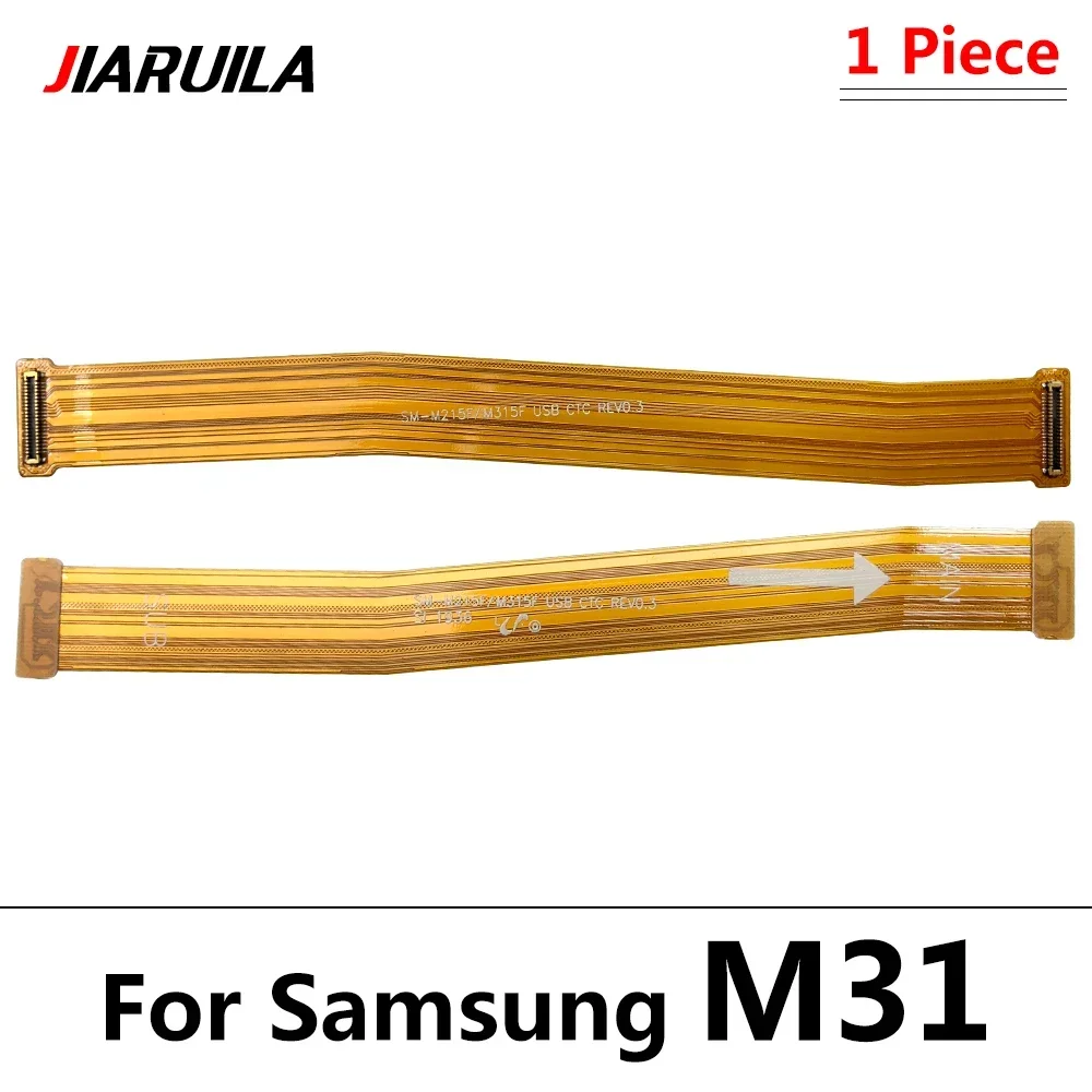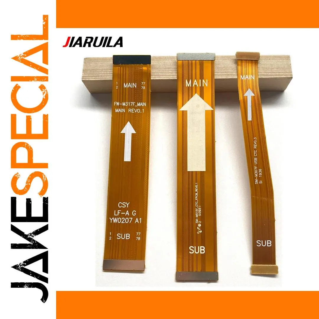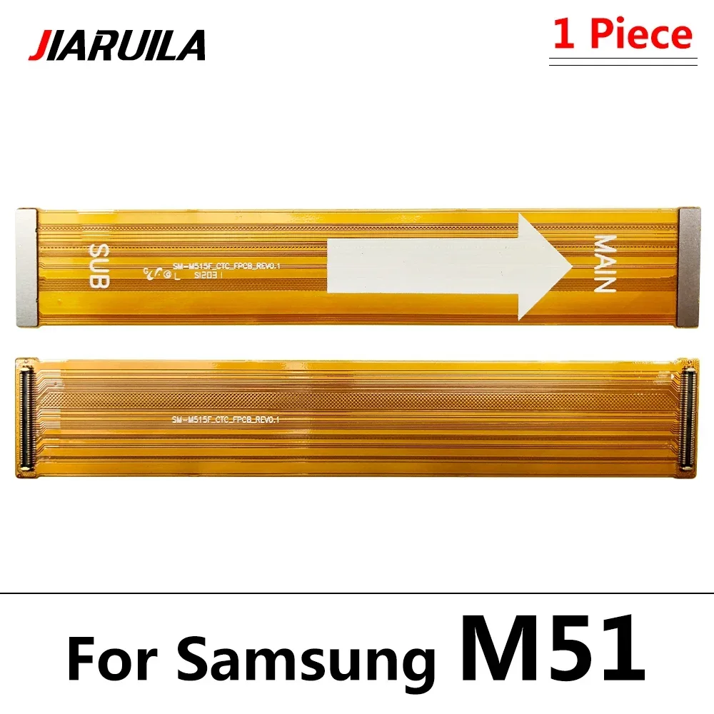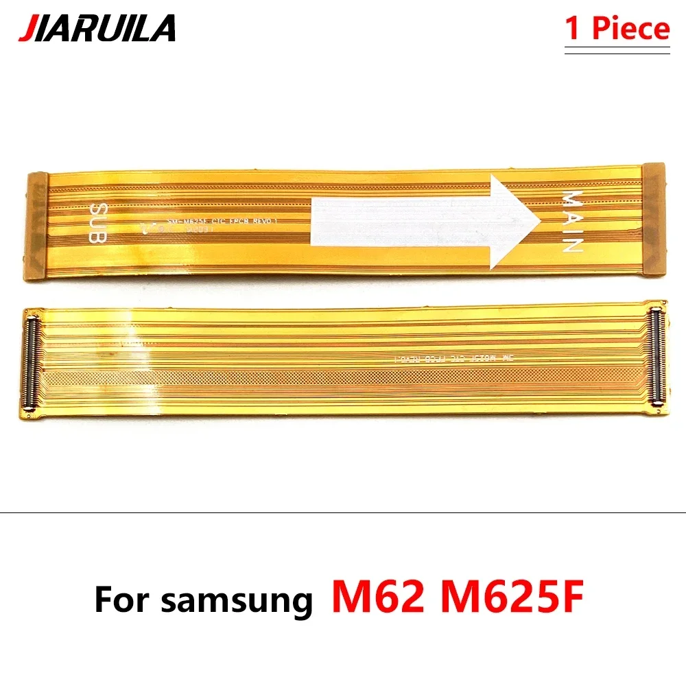 This flexible ribbon cable is designed for Samsung smartphones, including models M10, M12, M20, M21, M21S, M22, M30S, M31, M31S, M32, M325F, M34, M51, M52, M526B, M53 5G, M54 5G, M62, and M625F. It serves as a main motherboard connector and LCD display flex cable, facilitating connections between the main board and the LCD screen. Featuring a sleek, flat, semi-translucent orange-brown design with precise white printed markings and metallic connector pads, this cable combines functionality with a modern, minimalist aesthetic, ensuring reliable performance and easy installation across compatible Samsung devices.
