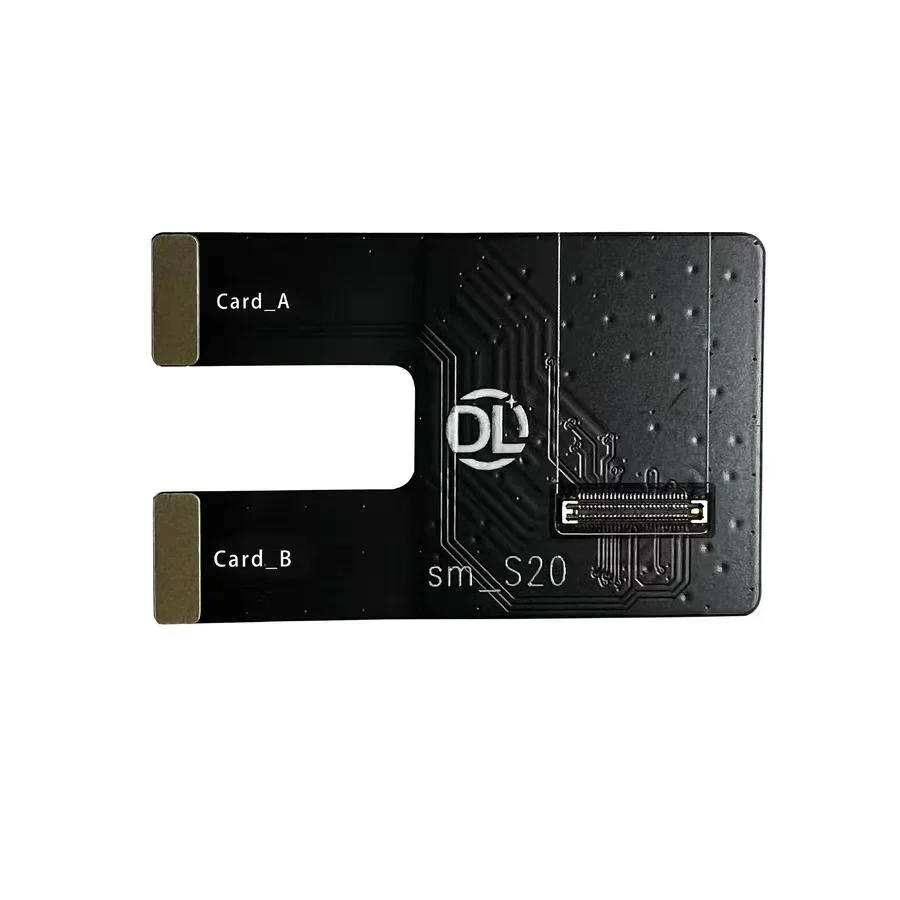 Enhance your Samsung Galaxy repair process with this high-quality LCD Screen Tester Flex Cable, compatible with models including Note10, Note20 Ultra, S20 series, S21 series, S22, S23, and S24 series. Designed for precise display testing and troubleshooting, this sleek, black, rectangular flex cable features a detailed circuit pattern for a technical aesthetic, reinforced with a gold-colored contact section for secure connection. Its minimalist design is highlighted by the white “DL” logo and model designation “S20” for easy identification. Streamline your repair workflow confidently knowing this durable tool provides reliable testing for LCD screens across a wide range of Samsung devices.