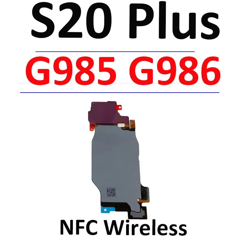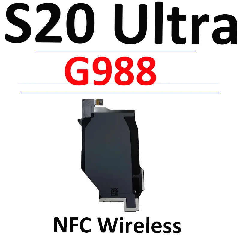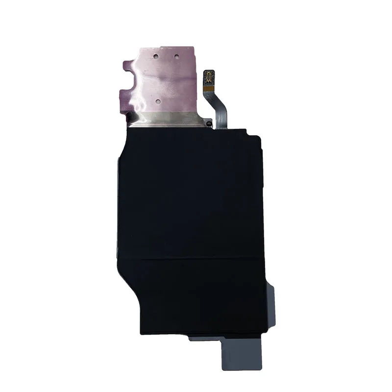 Enhance your Samsung Galaxy device with this high-quality wireless charging induction coil NFC module flex cable, compatible with models including S20, S20 FE, S20 Plus, S20 Ultra, S21, S21 FE, S21 Plus, S21 Ultra, S22, S22 Plus, and S22 Ultra. Crafted with a sleek black surface and textured finishes, it features a precise rectangular shape with a central circular NFC coil and Gold contact pads for reliable electrical connections. The metallic connector tab ensures secure attachment inside your phone. Designed for durability and tested for quality assurance, this external component offers a seamless replacement for optimal wireless charging and NFC functionality, restoring your device’s performance with confidence.