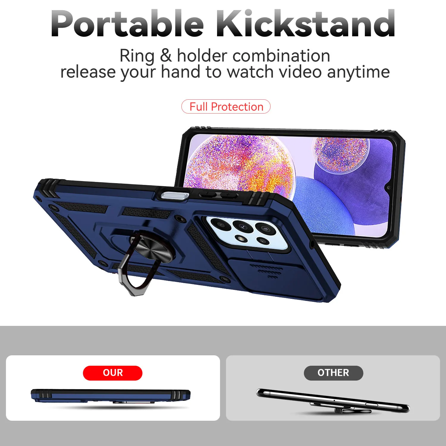 Transform your Samsung Galaxy A23, M23, or M13 4G with this stylish yet durable ring stand case. Crafted from high-quality plastic, it offers robust anti-fall and camera protection, ensuring your device stays safe during daily use. The case features a sleek, half-wrapped design in plain style, available in colors like blue, black, and red, perfectly matching your personal aesthetic. The standout feature is a magnetic, rotating ring stand, which provides adjustable viewing angles and a secure grip for comfortable handling. Lightweight and reliable, this case balances protection with convenience, helping you stay connected with confidence. Elevate your phone’s safety and style with this premium accessory tailored for your device.