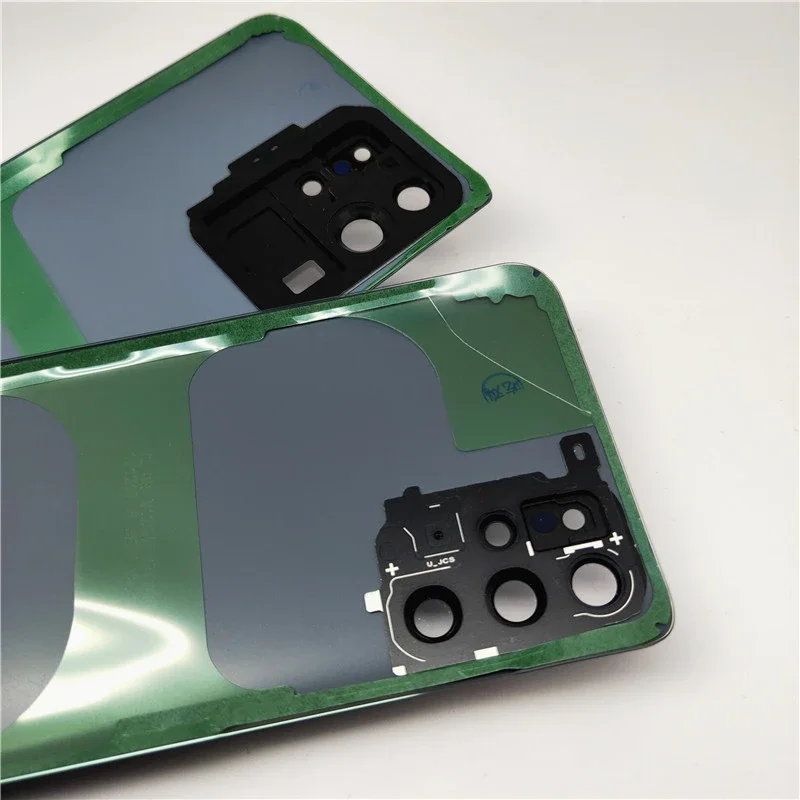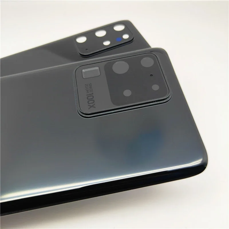 The Battery Back Cover is designed for Samsung Galaxy S20 models, including G980, G985, and G988, ensuring a perfect fit. With a sleek high-gloss black finish, this cover adds a modern touch while also protecting your device. The flat surface and smooth contours not only enhance visual appeal but also ensure comfortable handling. Each cover features precise cutouts for camera functionality, particularly for the S20 Ultra, which showcases three distinct openings tailored for the lenses. If you're looking for a stylish and functional replacement, this is the ideal choice for your Galaxy S20 series smartphone.