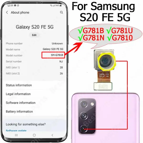 - This is a genuine rear camera module compatible with Samsung Galaxy S20 FE 4G and 5G models, designed to restore the original camera functionality and image quality of your device.