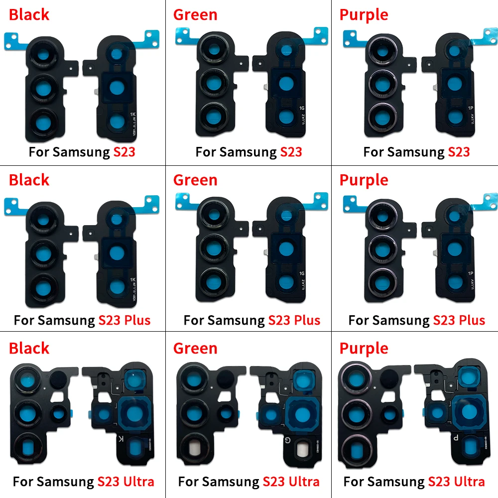 Upgrade or replace your Samsung Galaxy camera lens with this high-quality, durable part. Designed specifically for models S22, S22 Plus, S22 Ultra, S23, S23 Plus, and S23 Ultra, this replacement ensures your device regains its pristine photographic clarity. The clear, convex glass lens features an anti-reflective blue tint, protecting your camera and enhancing image quality. Encased within a sleek, black plastic or metal frame holder, it offers a secure fit and easy installation. Available in multiple stylish colors—black, green, pink, white, purple, and silver—allowing you to match your device or personalize your look. Rest assured, this premium component is crafted with care to restore your camera’s performance and aesthetics seamlessly.