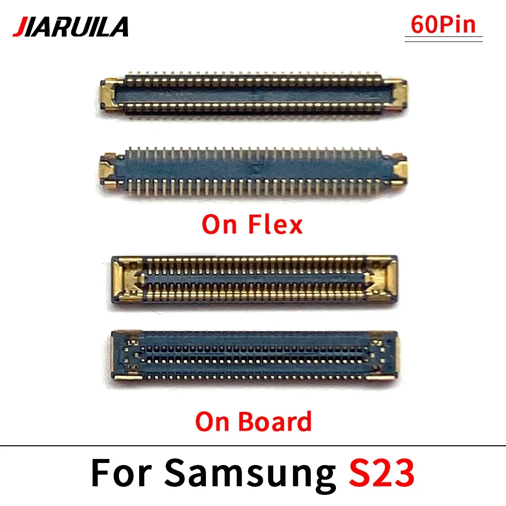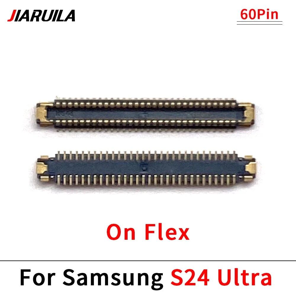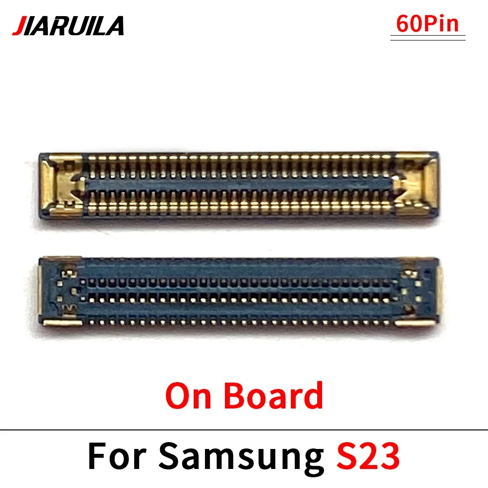 Experience seamless connectivity with this this LCD FPC connector, designed specifically for Samsung Galaxy S23, S23 Plus, S23 Ultra, S24, S24 Plus, and S24 Ultra smartphones. Crafted with precision, this connector features a sleek, elongated rectangular shape with a polished gold finish that exudes a high-quality, modern aesthetic. Its tiny, gold-plated pins are precisely aligned along the edge, ensuring reliable electrical contact, while the contrasting black plastic or rubber components highlight the detailed craftsmanship. Whether used for the display, charging port, or WiFi antenna, this versatile connector guarantees a secure fit and optimal performance, making your device repairs or assembly precise and straightforward. Elevate your repair projects with this dependable component that merges functionality with style.