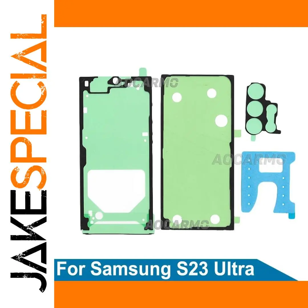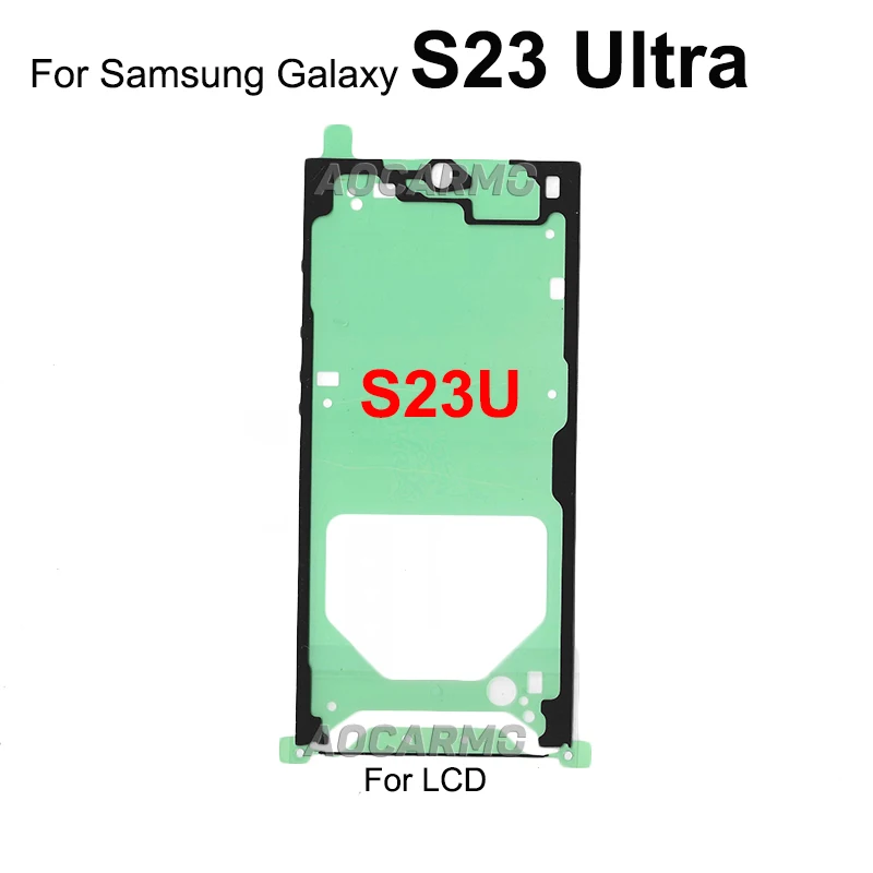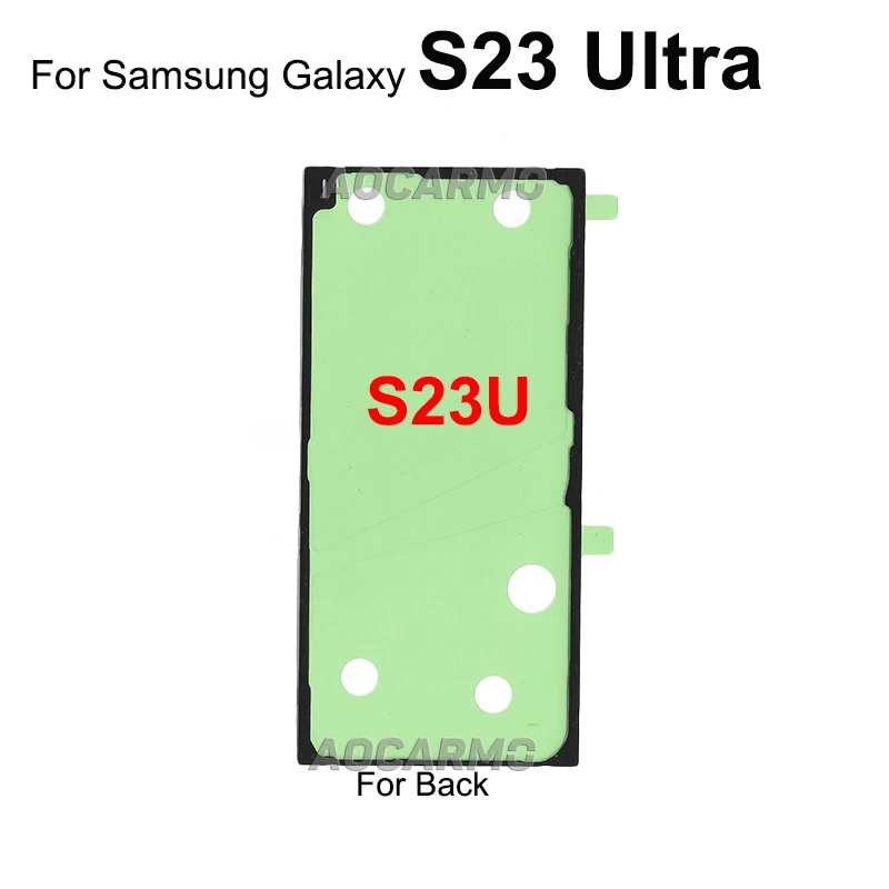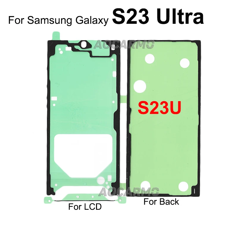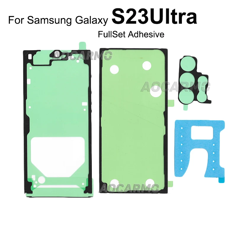 Enhance your Samsung Galaxy S23 Ultra with this set of adhesive components designed for seamless installation. This kit includes a waterproof rear cover sticker and various adhesive parts specifically tailored for your device, ensuring a perfect fit. The main adhesive features outlined cutouts for camera and hardware alignment, while the stunning shades of green and black outlines offer a sleek look. The smaller blue components provide additional adhesive support for buttons and sensors. Crafted from flexible mixed materials, these adhesives promise a strong bond, allowing you to restore your device’s functionality and aesthetics effortlessly.