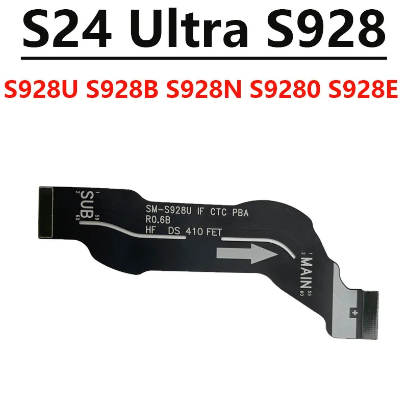 Enhance your Samsung Galaxy S24 Ultra with this high-quality replacement USB charging port board and LCD flex cable. Designed specifically for models S928B, S928E, S928U, and S928N, this component ensures seamless charging and data transfer. The elongated, bar-style design perfectly fits inside your device, restoring its original functionality and reliability. Crafted with precision, the black flexible cable features clear gray and white markings, including directional arrows and model labels, highlighting its technical craftsmanship. A small, detailed circuit board with solder points and electronic components adds to its high-tech appeal. Suitable for adult enthusiasts, this replacement offers a practical solution to damaged or malfunctioning parts, ensuring your device performs optimally. Trust this component for durability and high performance.