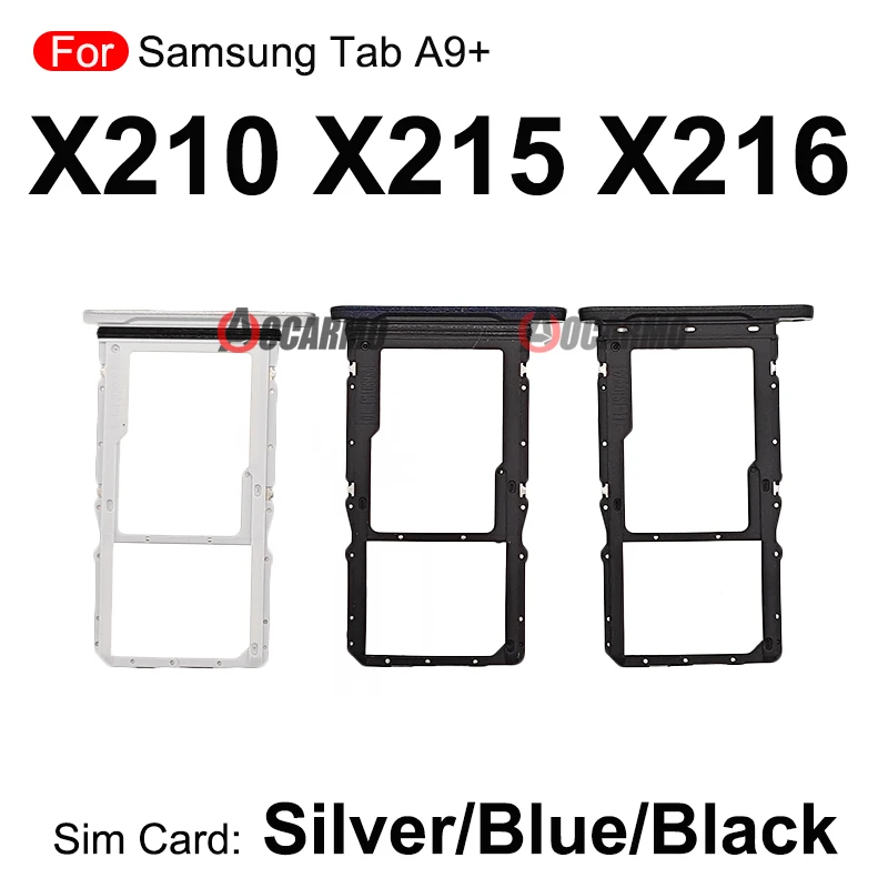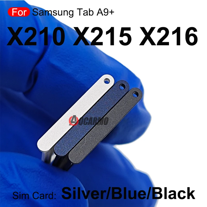 Enjoy a seamless tablet experience with this high-quality replacement SIM card tray designed specifically for the Samsung Galaxy Tab A9 Plus models SM-X210, X215, and X216. Whether you're replacing a lost or damaged tray, this component ensures your tablet maintains its functionality and sleek appearance. Available in three elegant colors—black, blue, and silver—you can choose the perfect match for your device. Each tray features a precise fit, smooth surface, and a narrow ribbon for easy insertion and removal. Crafted to match your tablet's specifications, these trays help restore your device’s connectivity quickly and effortlessly, ensuring you stay connected wherever you go.