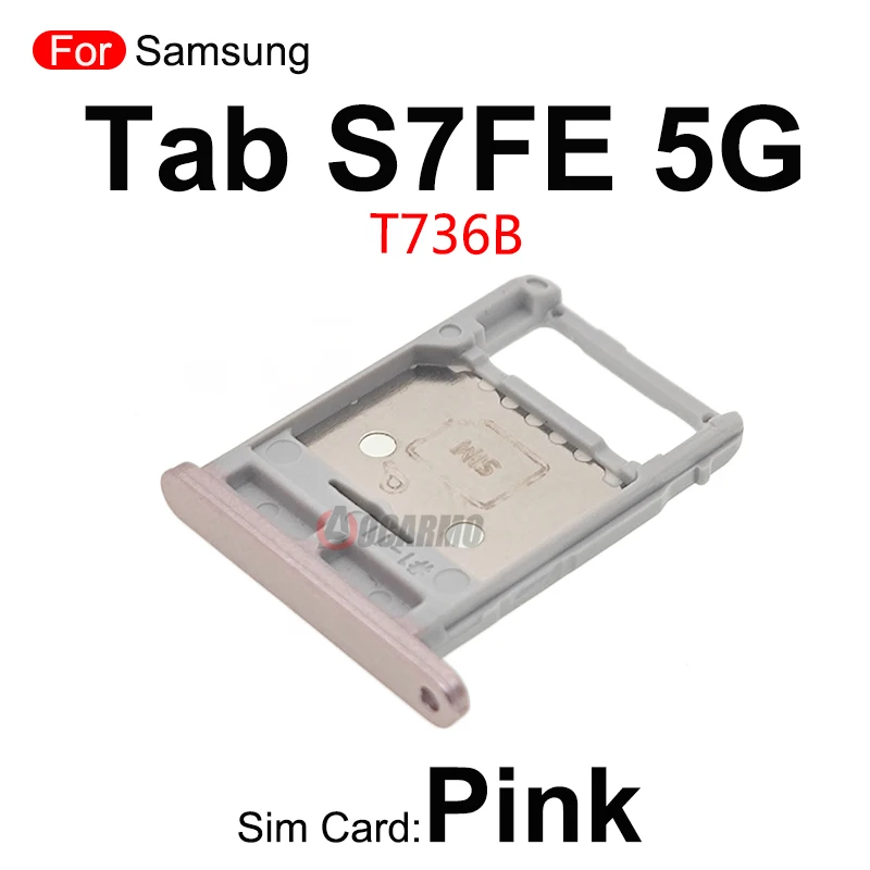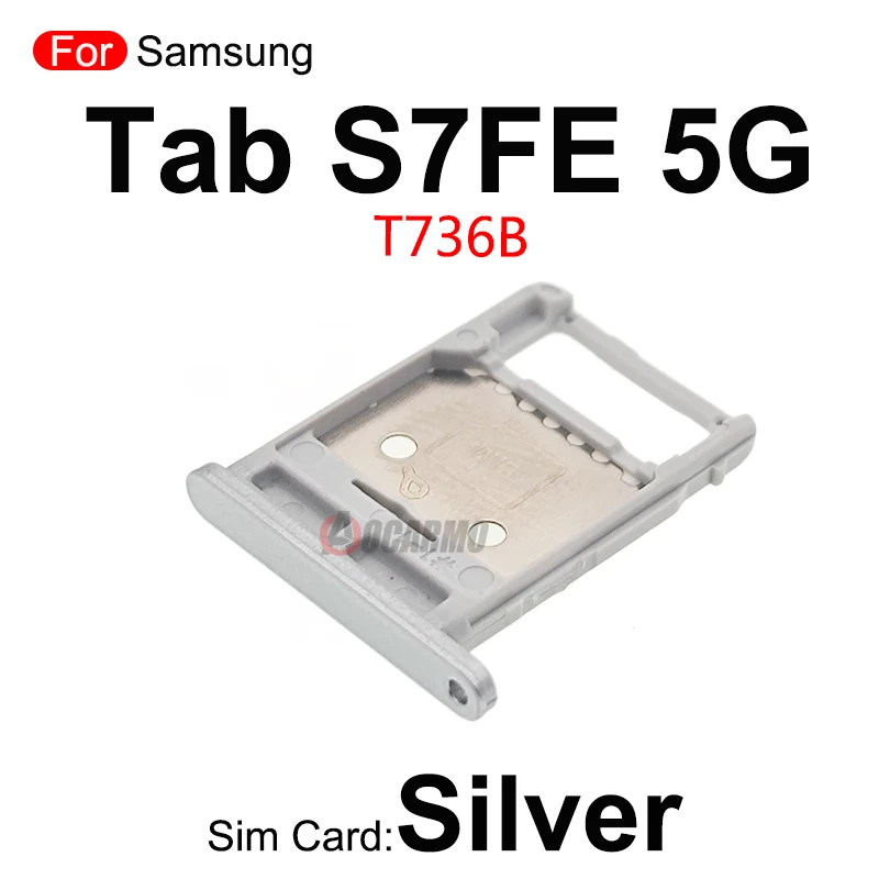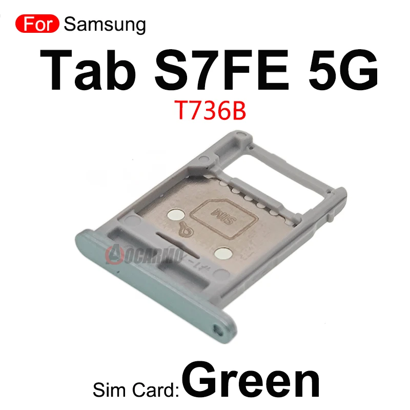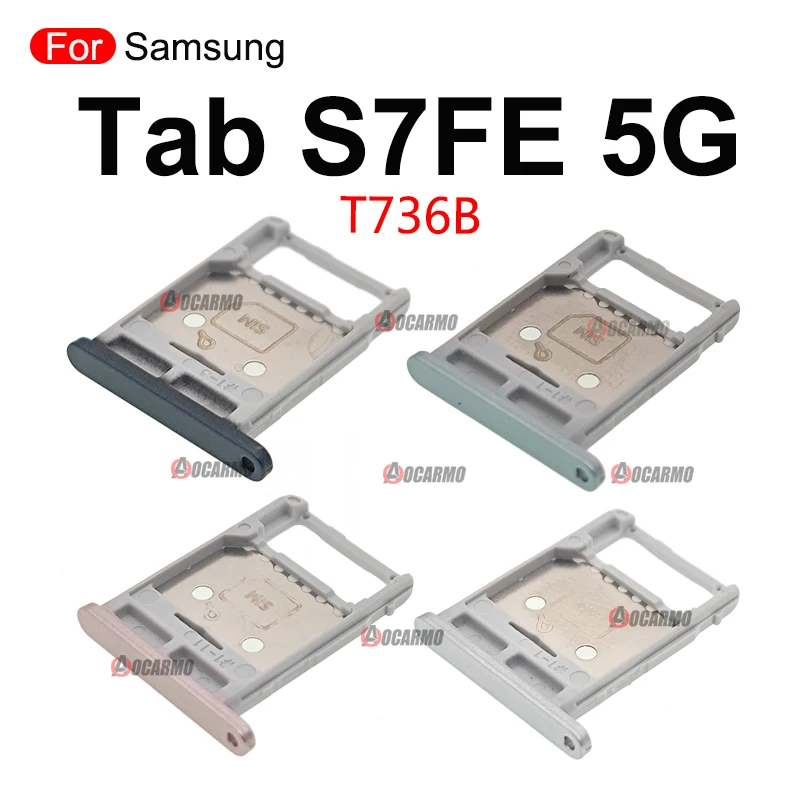 Upgrade or replace your Samsung Galaxy Tab S7 FE 5G (SM-T736B) SIM tray and microSD card slot with this precise, compatible replacement. Available in four vibrant colors—silver, black, pink, and green—these sleek, well-crafted components feature a rectangular shape with rounded corners, a smooth metallic or matte finish, and detailed fit for seamless installation. Designed with small holes and indentations for accurate attachment, each tray maintains the device’s modern aesthetic while ensuring reliable functionality for your SIM and microSD cards. Crafted to restore your tablet’s connectivity options, these trays are essential for a stylish yet practical repair.
