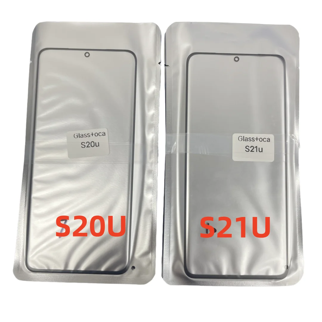 This set of 5 high-quality front touch screen glass lenses with OCA film is expertly designed for a perfect fit with Samsung Galaxy models including S20, S21, S22, S23 Ultra, S8, S9, S10 Plus, and S10 5G. Each lens features a sleek bar design with a subtle black outline that mimics the smartphone screen frame, providing clarity and durability. Constructed from premium glass material, the lenses boast a flat and smooth surface, ensuring optimal touch responsiveness. With a small circular cutout for the front camera, these lenses are a reliable choice for maintaining your device’s functionality and style.