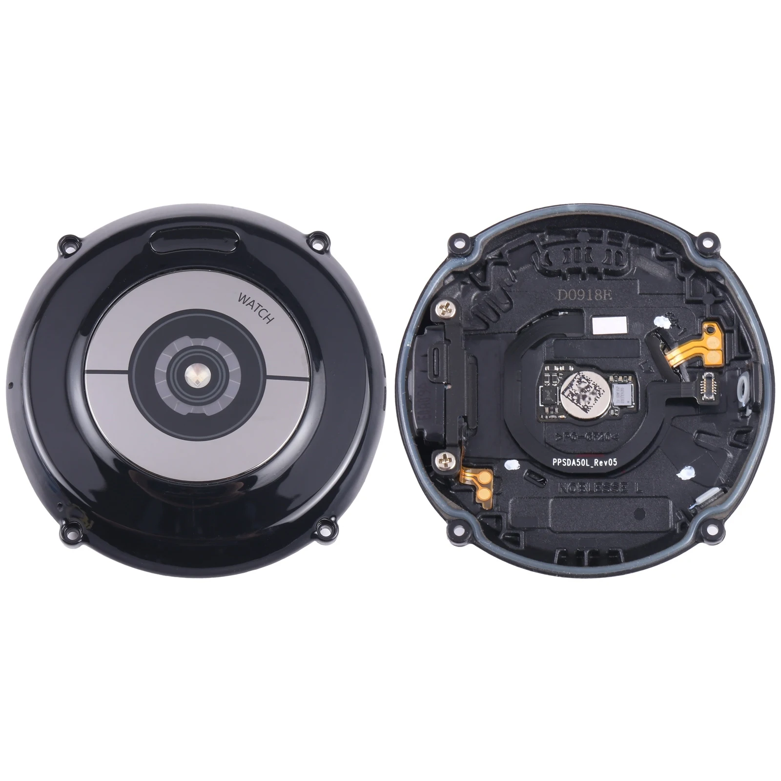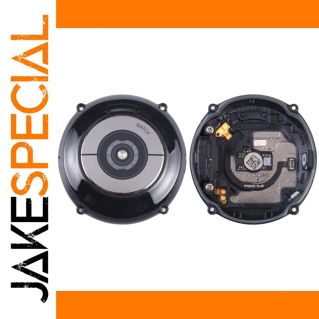 Experience the perfect fit and sleek design of this replacement back cover for your Samsung Galaxy Watch 3. Crafted with precision, it features a glossy, metallic finish on the outer shell, providing a modern and sophisticated look. The circular shape beautifully integrates a central, raised sensor area that houses the built-in heart rate sensor, offering a seamless aesthetic. The compatibility with both 41mm SM-R850 and 45mm SM-R840 models ensures you can restore your watch’s appearance and functionality effortlessly. Inside, the matte black interior showcases intricately arranged electronic components, including contact points and wireless charging modules, in an organized manner. This high-quality part combines technical excellence with stylish design, making your watch look as good as new while maintaining optimal performance.