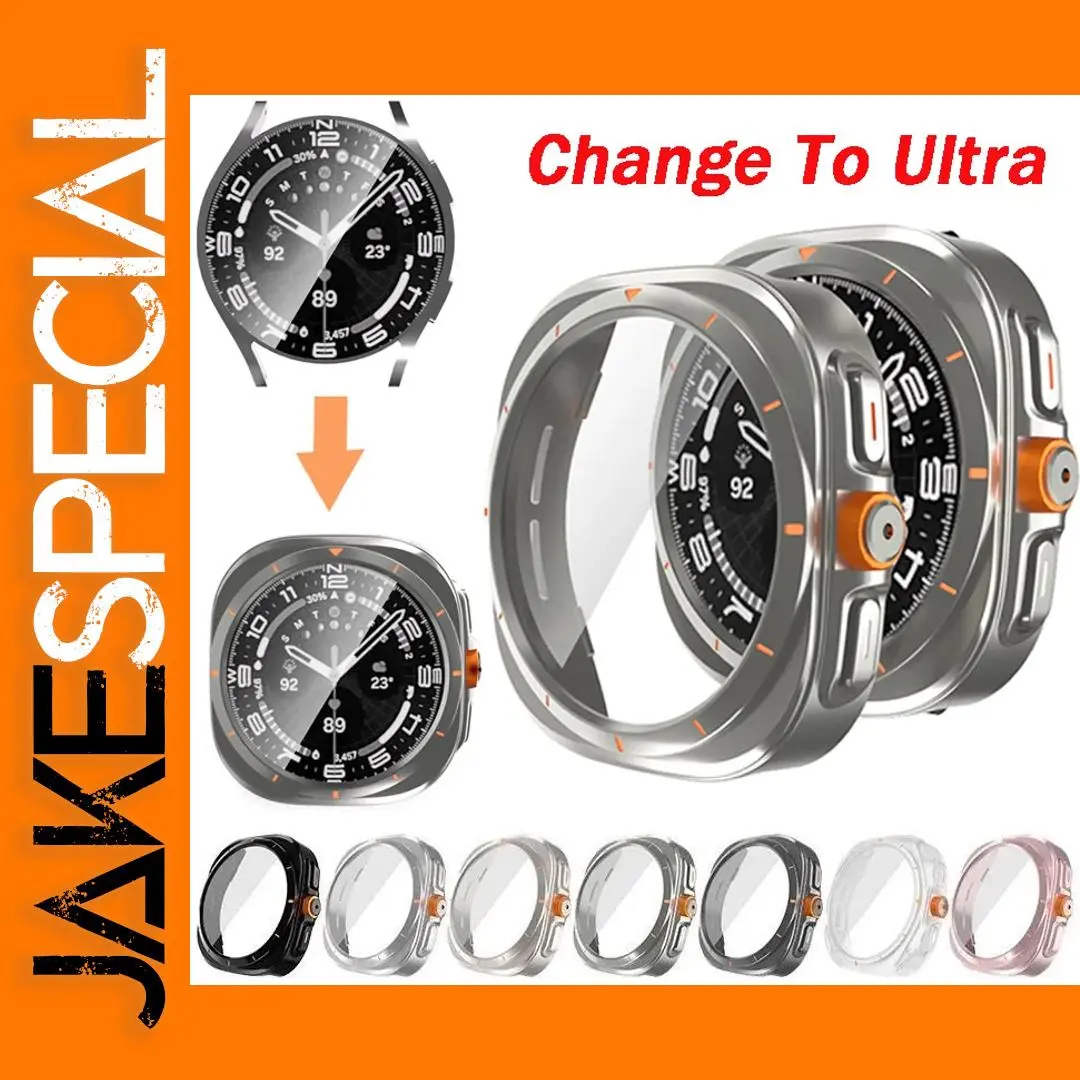 Experience peace of mind with this durable and sleek Change To Ultra Case designed specifically for Samsung Galaxy Watch 7 models, including 40mm and 44mm sizes. Upgrading your watch's protection, this case features a tempered glass screen protector that adds an extra layer of security against scratches and impacts. Crafted from high-quality plastic, it offers a seamless fit that emphasizes your watch's style while keeping it safe from daily hazards. Imagine holding your upgraded Galaxy Watch Ultra 47mm confidently, knowing your device is shielded effectively. Easy to install, this case enhances your watch's look without compromising accessibility or functionality. Elevate your experience today and extend your device’s lifespan with this essential upgrade.