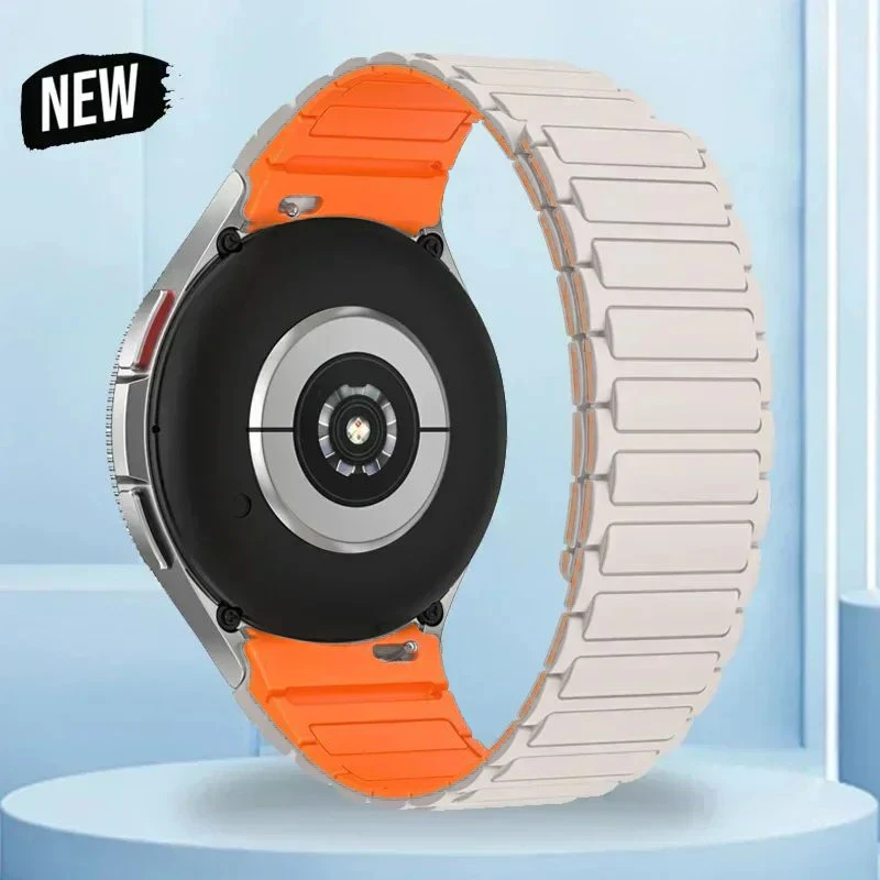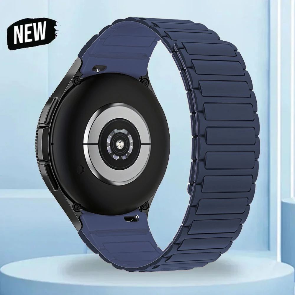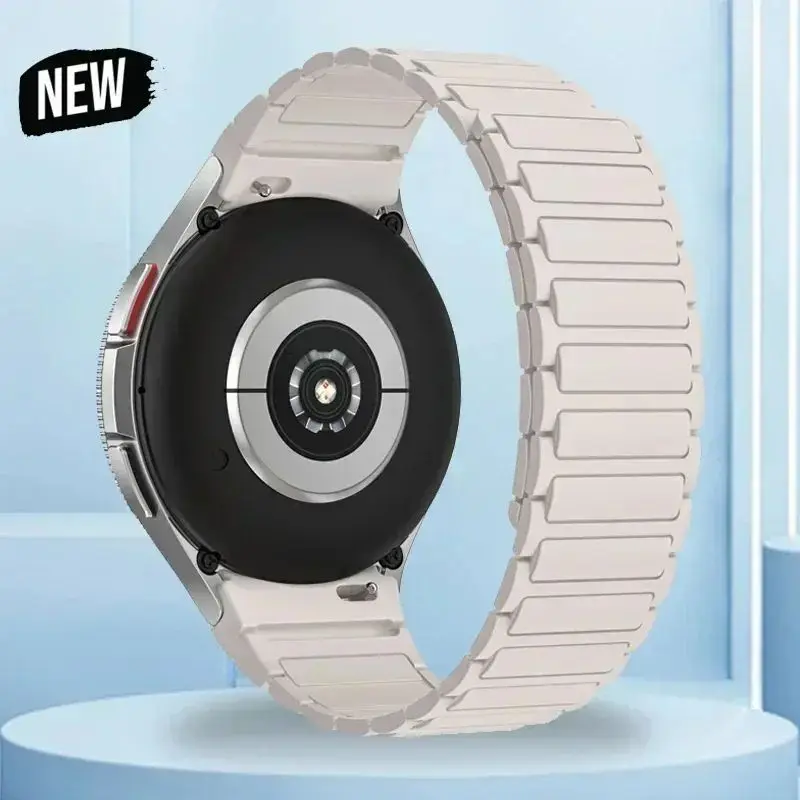 - This silicone strap features a seamless no-gap design, offering a sleek, modern look for your Galaxy Watch, with a smooth surface that enhances comfort and style. Magnetic clasp provides adjustable fitting.