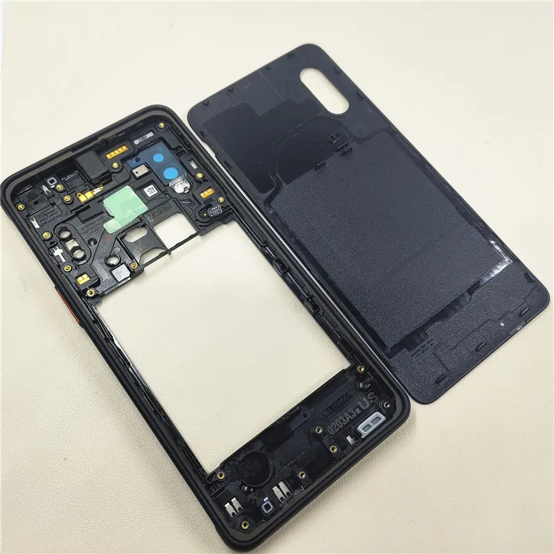 Enhance the functionality of your Samsung Galaxy Xcover Pro SM-G715 with this high-quality replacement housing middle frame and battery back cover. Crafted from durable black plastic, this product features precise cutouts to ensure compatibility with essential components such as the camera lens and buttons. The battery back cover offers a stylish textured finish that not only boosts grip but also elevates the overall appearance of your device. With its sleek design, this replacement part is the perfect solution to restore your phone's aesthetic and functionality seamlessly.