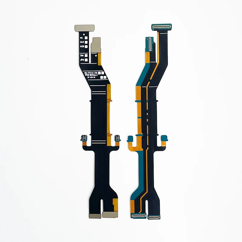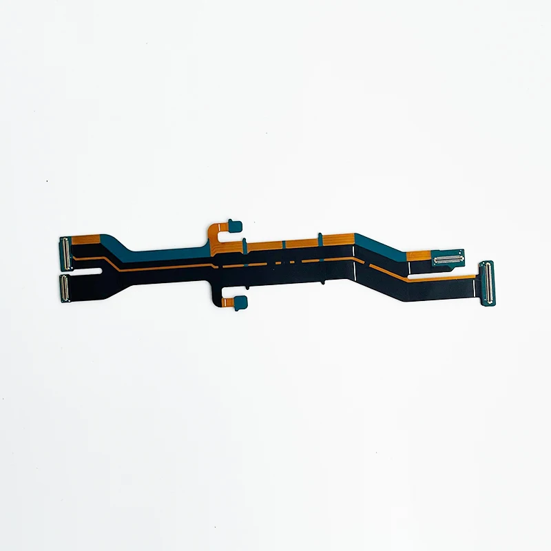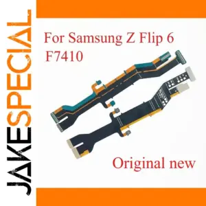 Optimize your Samsung Z Flip 6 with this authentic motherboard flex cable, precisely designed for the F7410 model. Featuring a sleek, elongated bar shape, it boasts a contrasting black base color accented by vibrant orange and teal highlights, giving it a modern tech aesthetic. The cable’s segmented profile, with varying widths and multiple small connectors, ensures perfect fit and functionality within your device’s hinge mechanism. Equipped with a flat, rectangular connector and numerous electronic components, this replacement part restores the LCD connection and spin axis functionality. Its high-quality construction guarantees durability and seamless integration, making your phone function like new and extending its lifespan. Trust this original component for reliable repair and optimal performance.