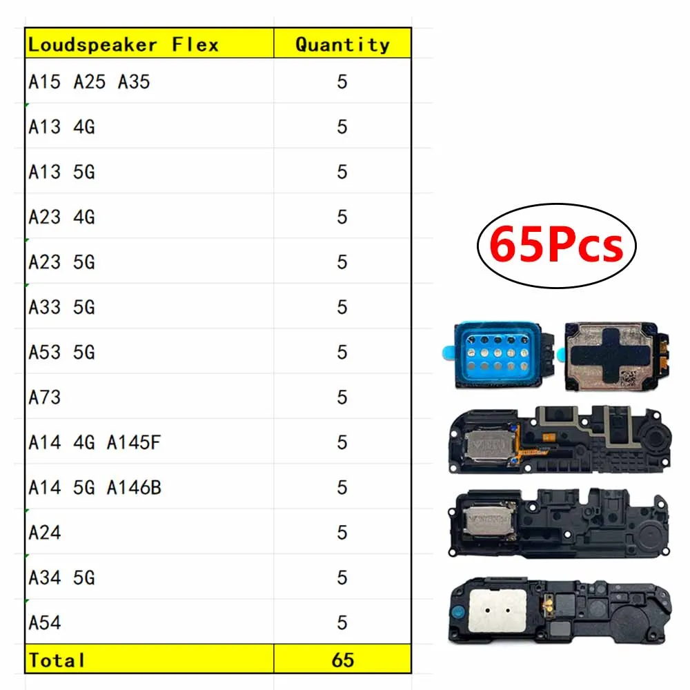 Restore your Samsung device’s sound quality quickly and efficiently with this premium set of tested, compatible flex cables. Whether you're performing a repair or stocking up for a repair business, these components will meet your needs. Thanks to their innovative design and rigorous testing, you can trust these flex cables to deliver clear, consistent audio and buzzer performance. Designed to fit models from A13 to A74 and supporting both 4G and 5G networks, this set offers unmatched versatility. Invest in quality, durability, and peace of mind—improve your device’s performance and enjoy a seamless audio experience today.
