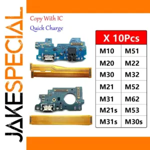 Enhance your Samsung smartphone repair with this set of 10 high-quality USB charging board ports and flex cables, compatible with models including M10, M20, M21, M21s, M22, M30, M30s, M31, M31s, M32, M51, M52, M53 5G, and M62. Each component supports fast charging, featuring integrated ICs, and comes with precise flex cables designed for power and volume buttons. Tested individually for reliability, these boards ensure a seamless replacement for your device’s charging port. Crafted with durability and compatibility in mind, they provide a trusted solution for restoring your Samsung phone’s charging functionality with confidence and ease.