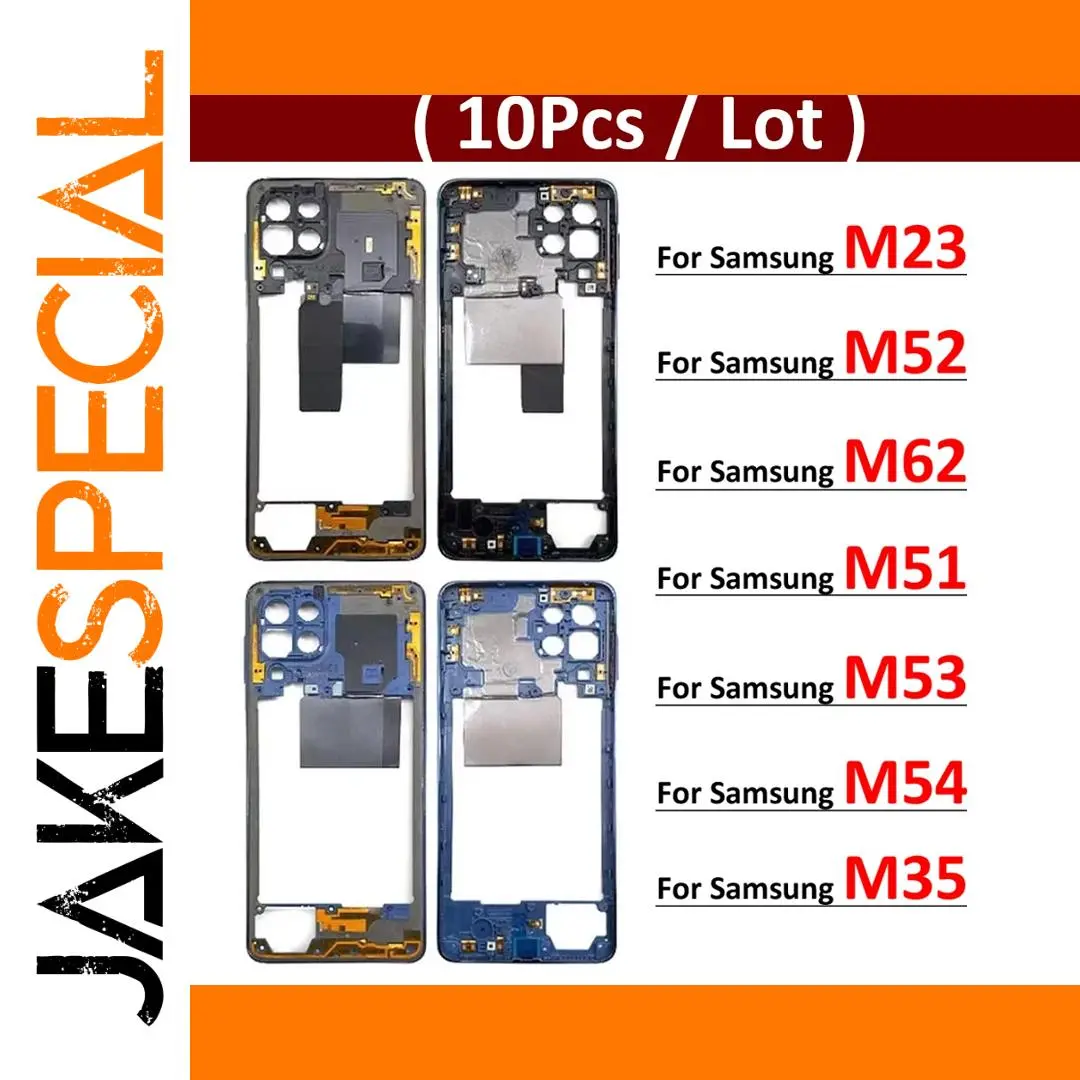 Transform your Samsung device's look and functionality with this set of 10 premium middle frame bezels. Designed to perfectly fit models like M23 5G, M52 5G, M53 5G, M62, M35, and M54, these bezels ensure a seamless assembly and long-lasting durability. With sleek, modern aesthetics, they come in a variety of colors, including black, blue, gold, silver, brown, green, and light blue, allowing you to personalize your device. Each bezel features precise cutouts for cameras, sensors, and internal components, coupled with reinforced internal ridges for added structural integrity. These high-quality parts are the ideal replacement to restore or upgrade your smartphone’s enclosure while maintaining a refined appearance. Imagine giving your device new life, with a fresh look that combines style and durability in perfect harmony.