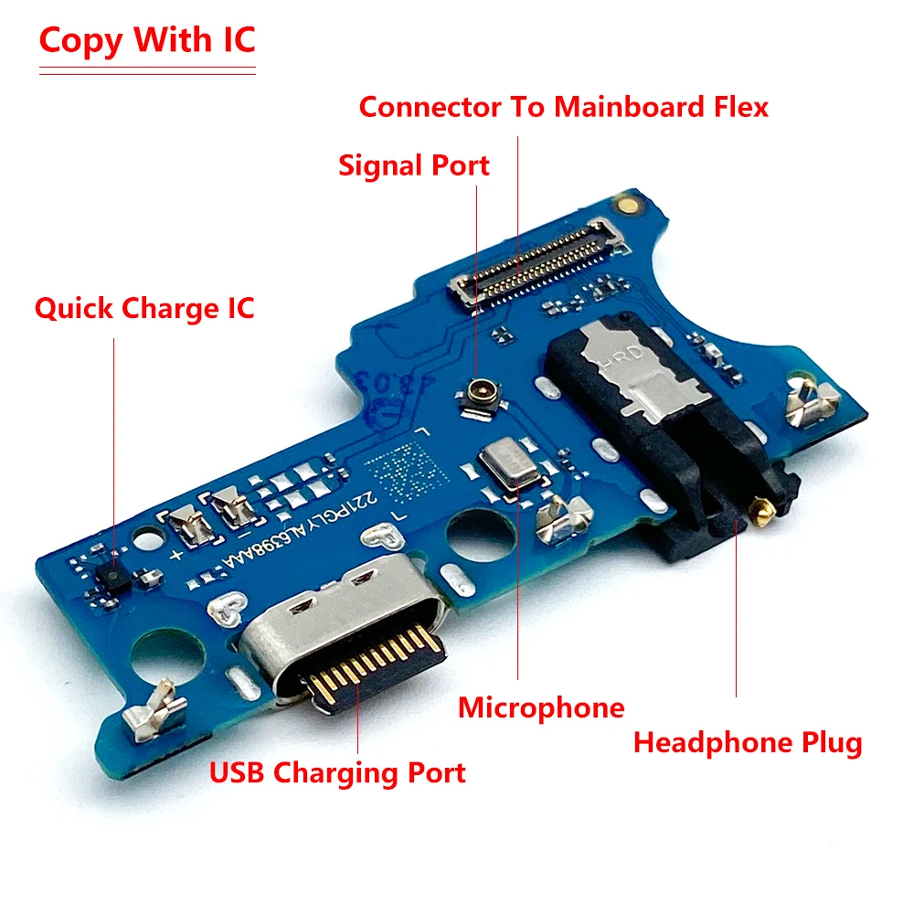 This USB Charging Port Connector Micro Board Flex Cable is the ideal replacement part you need for seamless charging on your Samsung devices. Crafted with a flexible printed circuit material, each cable features vibrant blue or green colors and supports fast charging with an integrated circuit (IC). Specifically designed for multiple Samsung models, this cable ensures compatibility with A14 4G (A145F), A14 5G (A146B, A146P), A23 4G (A235F), A23 5G (A236B), A24 4G (A245F), A34 5G (A346B), A54 5G (A546B), A04 (A045F), A04E (A042F), A04S (A047F), A05 (A055F, A057F), and A42 5G (A426B). Enjoy the ease of charging with additional features, ensuring durability and reliability in your everyday use.