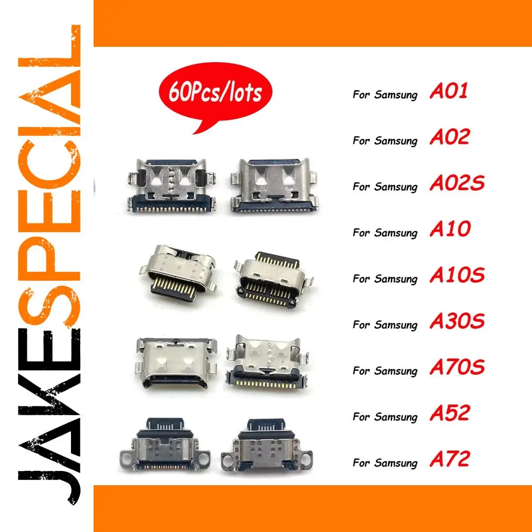 - Contains 60 micro USB charging port plugs, compatible with numerous Samsung models including A01, A02, A02S, A10, A10S, A11, A12, A20, A20S, A21, A21S, A30, A30S, A31, A32, A50, A50S, A51, A51S, A52, A70S, A71, A72, and more.