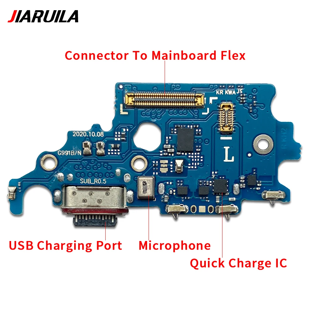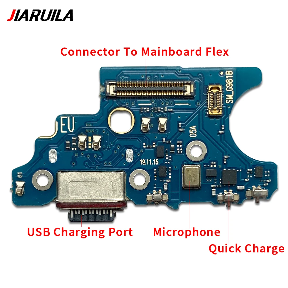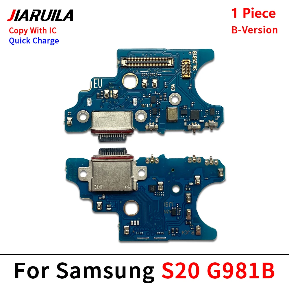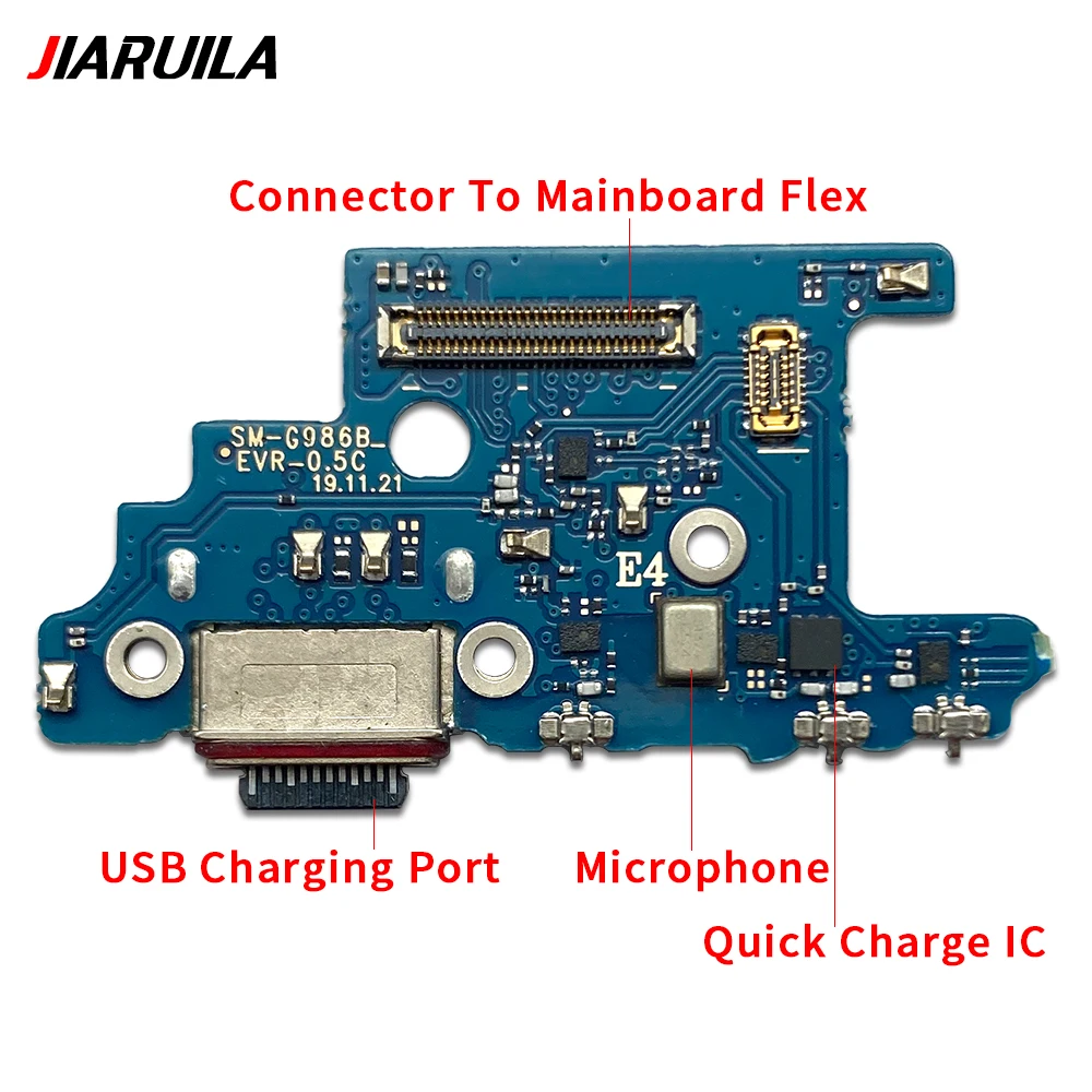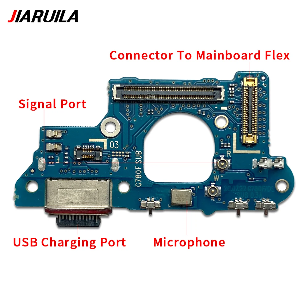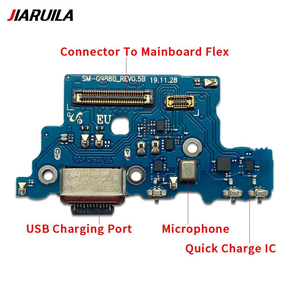 Experience seamless charging and data transfer with this high-quality USB port connector board designed specifically for Samsung smartphones. Crafted with precision, this component features a sleek, rectangular bar design with rounded edges, offering a modern aesthetic that complements your device's internal architecture. The metallic silver USB Type-C port sits centrally or is slightly offset, accented by small, shiny gold-tone flex cable connectors, ensuring robust connections. Embedded microchip components with alphanumeric labels enhance its organized appearance, while metallic-rimmed mounting holes facilitate easy installation. Compatible with multiple Samsung models such as S20 FE 4G, G981B, G986B, G988B, G991B, and G991N, this part supports fast charging, headphone OTG, and microphone functionality, making it an essential replacement for optimal device performance.