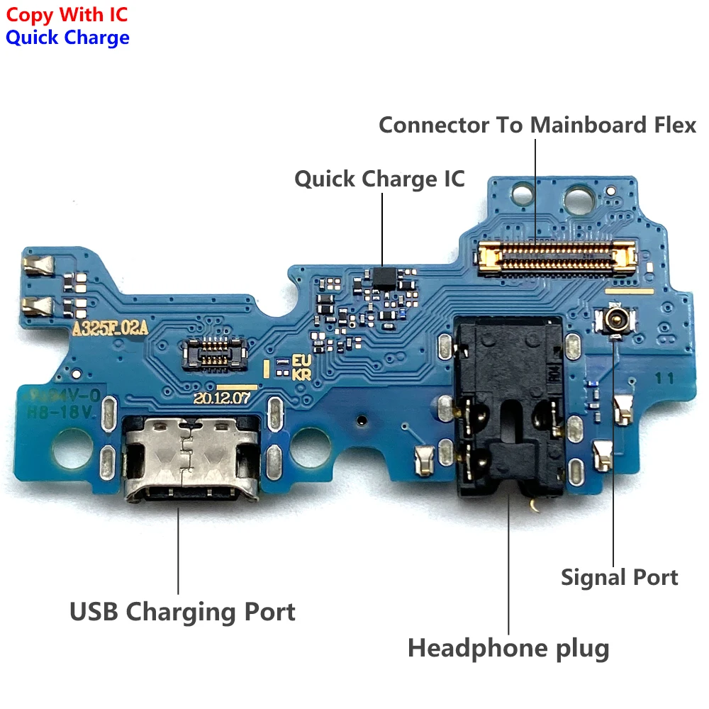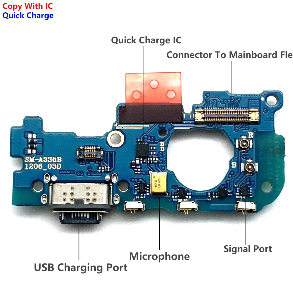 Experience seamless connectivity and fast charging with this high-quality USB board and main flex cable designed specifically for Samsung smartphones. Featuring a sleek blue circuit board adorned with detailed solder points, chips, and connectors, it exudes a modern and professional appearance. The gold-colored flex cable with black insulation sections adds a striking contrast, showcasing printed markings and directional arrows. This component not only ensures reliable power and volume button functionality but also guarantees compatibility with a broad range of Samsung models, including A22, A24, A32, A33, A34, A52, A53, A54, A72, and A73. With its precise layout and technical excellence, this flex cable is the perfect solution to restore or upgrade your device’s performance, offering durability and efficiency.