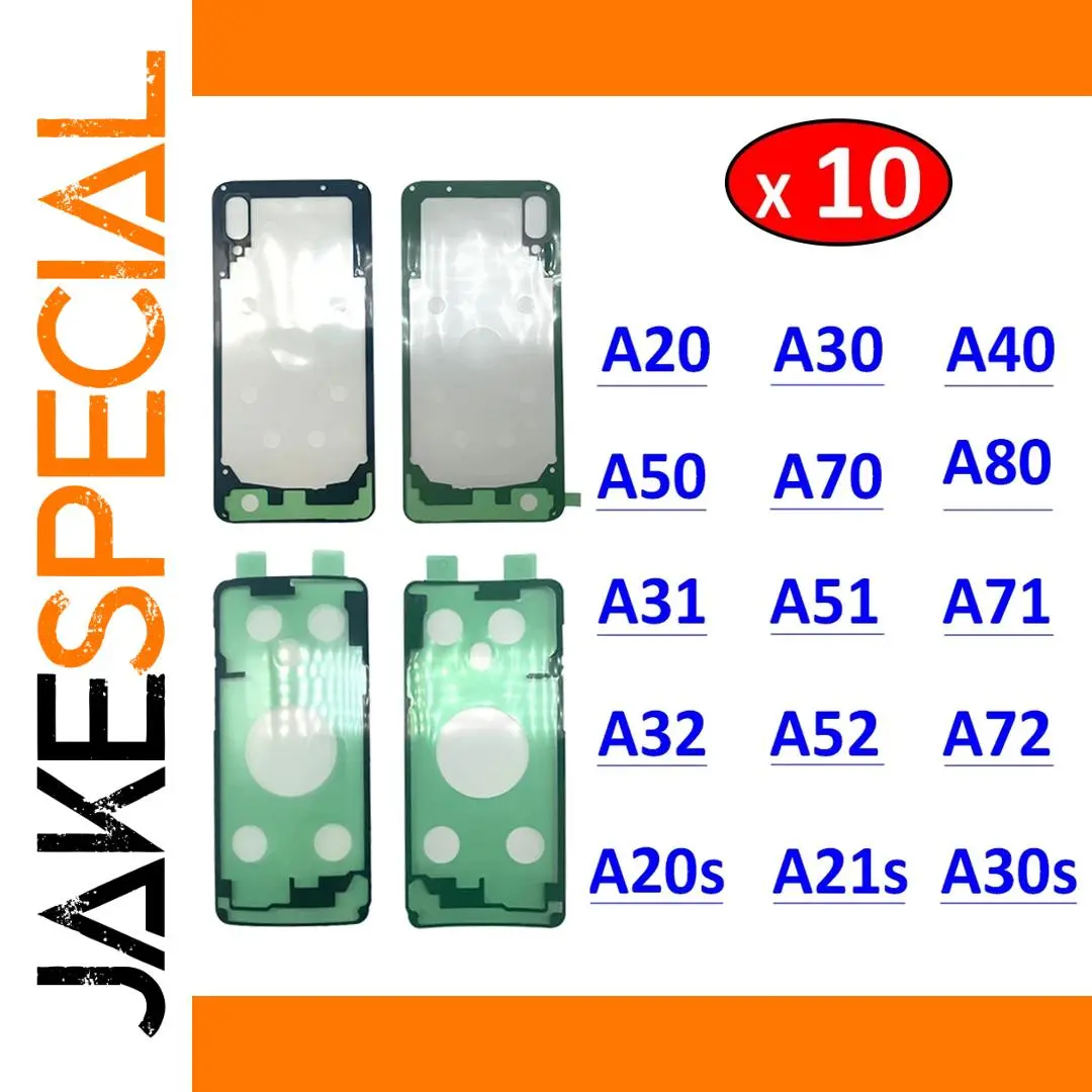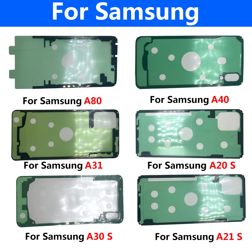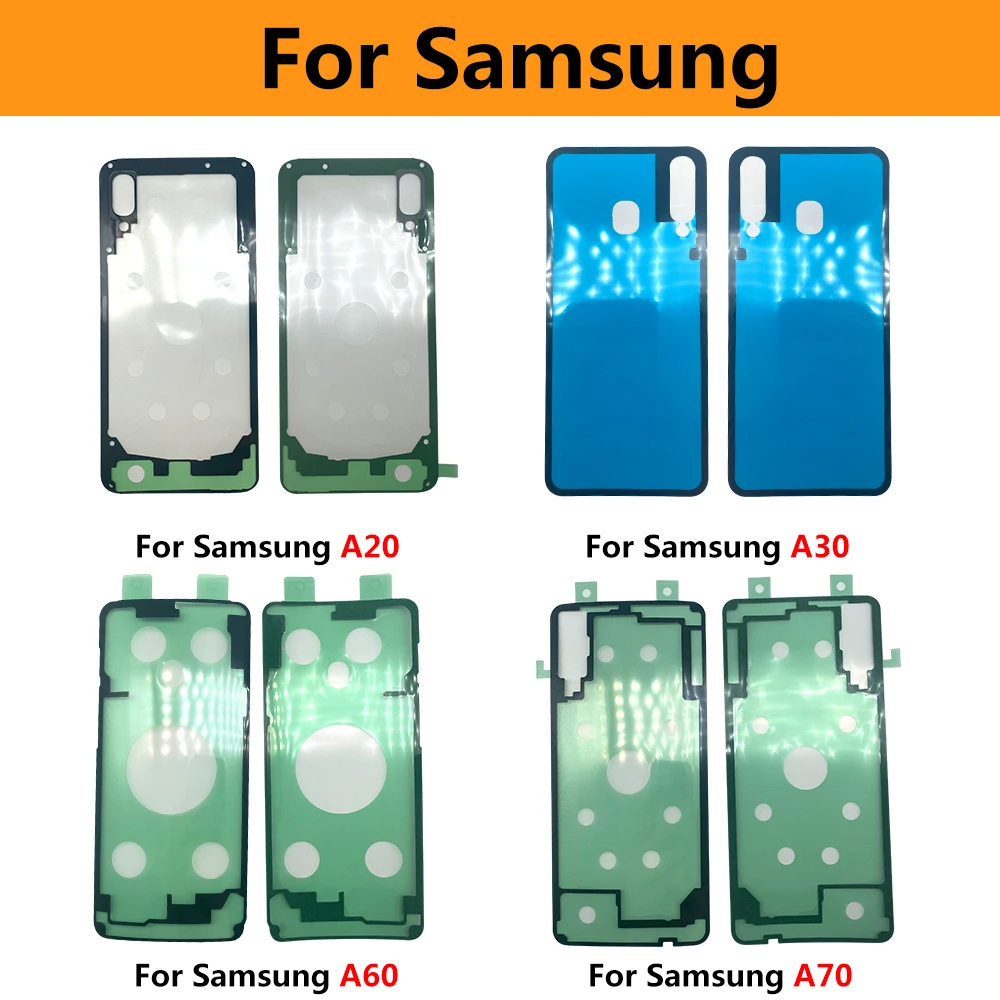 Transform your Samsung smartphone with these sleek, waterproof adhesive back covers. Designed specifically for models like A20, A30, A50, A70, and more, they ensure a seamless fit and a clean, modern look. These stickers feature a glossy, transparent surface that subtly enhances the device's aesthetic while protecting it from water ingress and damage. The green adhesive backing incorporates precise circular and rectangular cut-outs that align perfectly with each model’s camera and internal components. Easy to apply, these durable components offer a reliable waterproof seal, extending the lifespan and functionality of your device. Ideal for repairs or replacements, they provide peace of mind in everyday use, combining practicality with style.