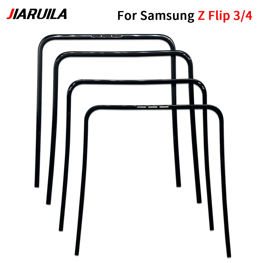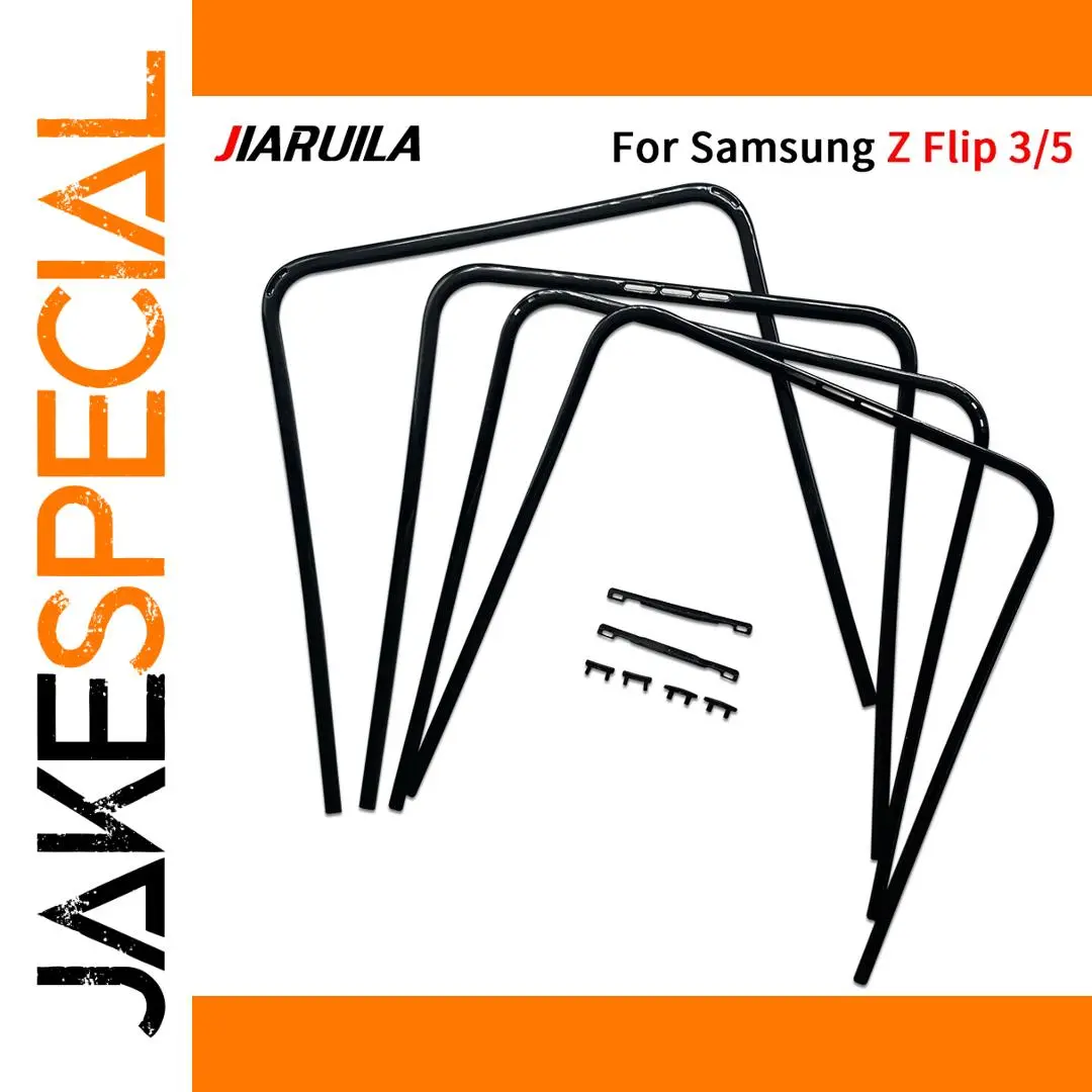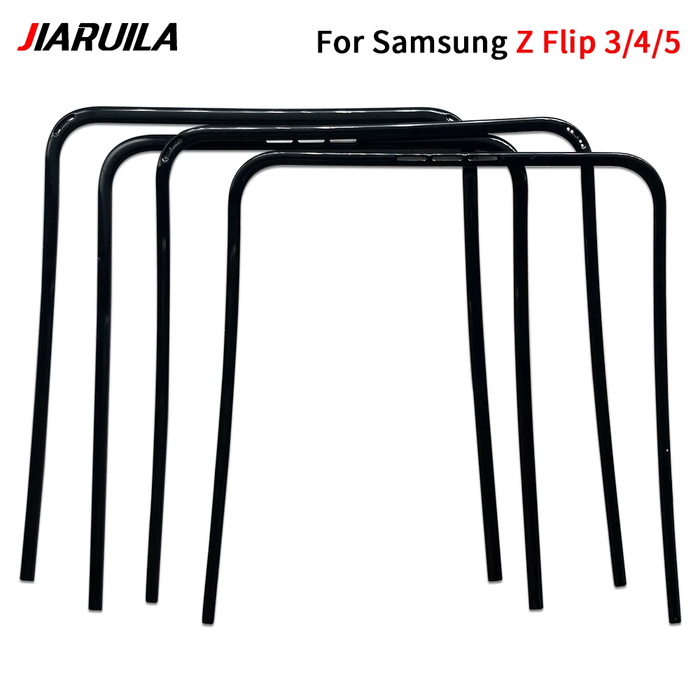 Transform your Samsung Z Flip 3, Z Flip 4, or Z Flip 5 with this precisely designed middle frame stand housing and bezel. Crafted by JIARUILA, these components boast a modern, minimalist look with a smooth, rounded rectangular profile finished in sleek black metallic. The uniform color and clean design ensure an almost invisible transition once installed, restoring your device’s original aesthetic. Made for durability and perfect fit, these parts streamline your phone's repair process, allowing you to customize or restore your device effortlessly. The set includes four black elongated bar-shaped frames and four connector buckles that secure the bezel firmly into place, ensuring longevity and a secure fit. Choose quality, choose JIARUILA for your repair needs.
