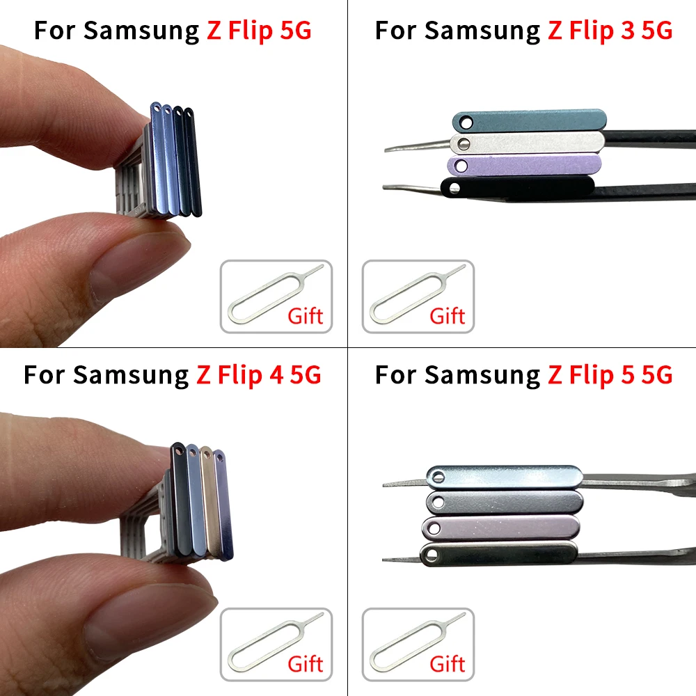 Imagine seamlessly keeping your Samsung Z Flip smartphone functioning flawlessly with our set of 10 high-quality SIM card tray slot adapters. Crafted to match specific Z Flip models, including Z Flip 2, 3, 4, 5, and 6, as well as 5G variants, these adapters ensure your device remains versatile and fully operational. Available in vibrant colors such as black, gold, green, silver, blue, and purple, they add a personalized touch to your device. Designed with a sleek, rectangular shape, these adapters blend minimalist style with durability. Their precise fit and secure locking mechanisms make inserting and removing SIM cards effortless, giving you confidence in every use. Whether for replacement or spare, these adapters enhance your device’s longevity and functionality.