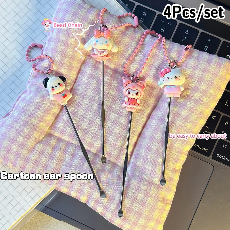 Imagine gently caring for your ears with this charming set of four Sanrio-inspired ear wax removal tools, designed to combine safety, hygiene, and playful style. Each tool features a slender stainless steel tip, approximately 9.7 cm long, with a pointed, slightly curved design that ensures gentle and effective cleaning without harming delicate skin. The handles showcase cute, colorful characters crafted from glossy resin, including a girl with black hair, Kuromi, a bunny, and Cinnamoroll, adding a whimsical touch to your daily hygiene routine. Lightweight and portable, these tools are perfect for travel or home use, making ear cleaning a fun, safe experience for both adults and children. Brighten your self-care with these delightful tools that blend function with cute aesthetics.