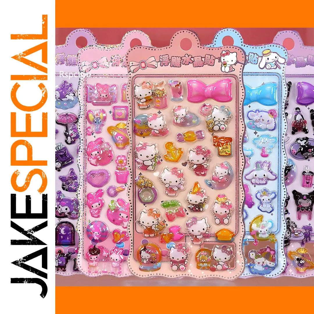 - Designed for DIY decorating projects, these stickers feature three-dimensional relief effects, shiny metallic accents, and vivid pastel hues that bring characters to life with charm and whimsy.