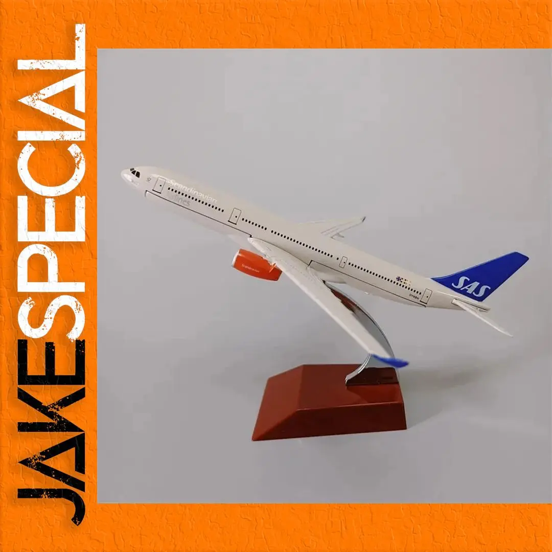 This collectible model airplane is a meticulously crafted 1/400 scale replica of the SAS A330, designed for aviation enthusiasts and collectors alike. Constructed from a durable metal alloy, this model exhibits a polished finish and features a primarily light-colored fuselage adorned with subtle airline branding. Blue and orange accents on the tail and engines breathe life into its aerodynamic design. Measuring approximately 16 cm in length, this model is perfect for display on its sturdy brown base. Assembly may be required, as both wings and wheels are detachable. Elevate your collection with this exquisite piece that captures the essence of flight.