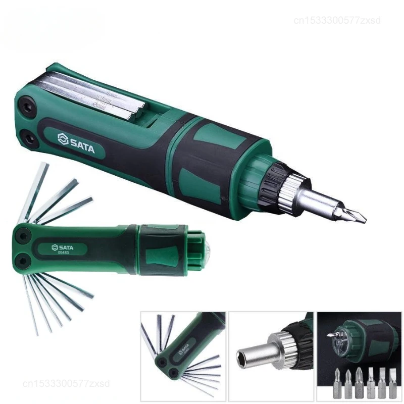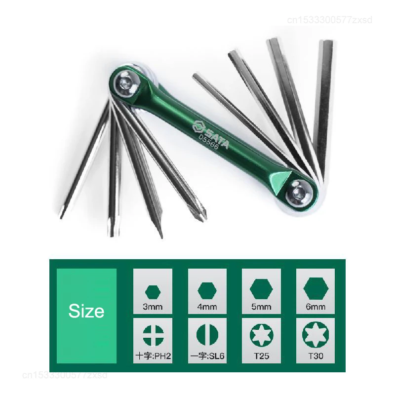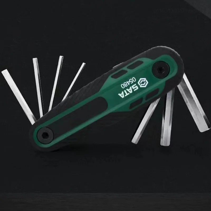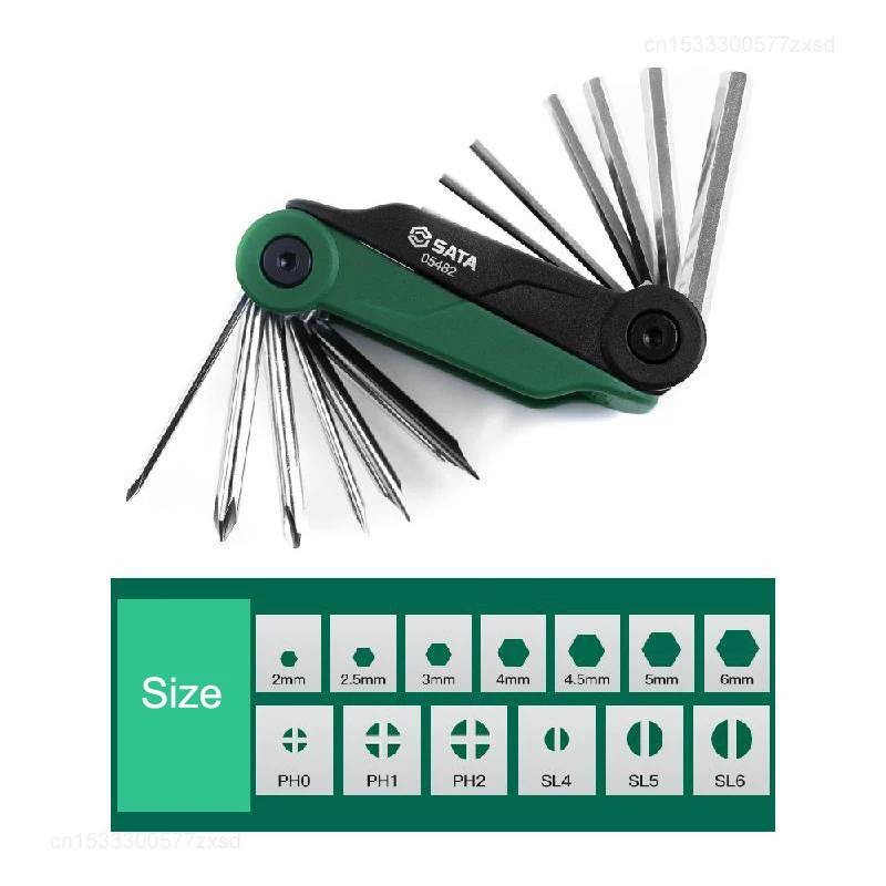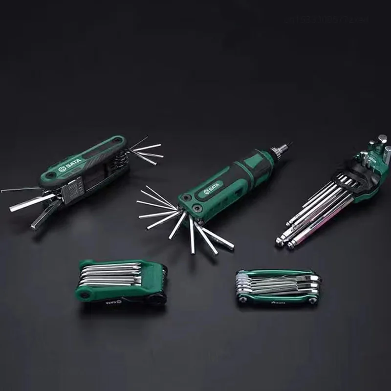 Experience the convenience and versatility of this this SATA Folding Hexagon Spanner Screwdriver Set, designed to simplify your household and DIY projects. Crafted with durable chromium-vanadium alloy steel, these tools provide robustness and longevity. The sleek black and vibrant green color scheme gives a modern, professional look, while ergonomic grips ensure comfortable handling during extended use. Each tool features foldable or retractable mechanisms, making storage compact and transport effortless. This set includes a variety of hex wrenches and screwdrivers, suitable for electrical and household applications. Its multifunctional design allows seamless switching between tasks, enabling you to tackle repairs with confidence. Invest in this reliable set and transform your toolbox into a well-organized, efficient workspace.