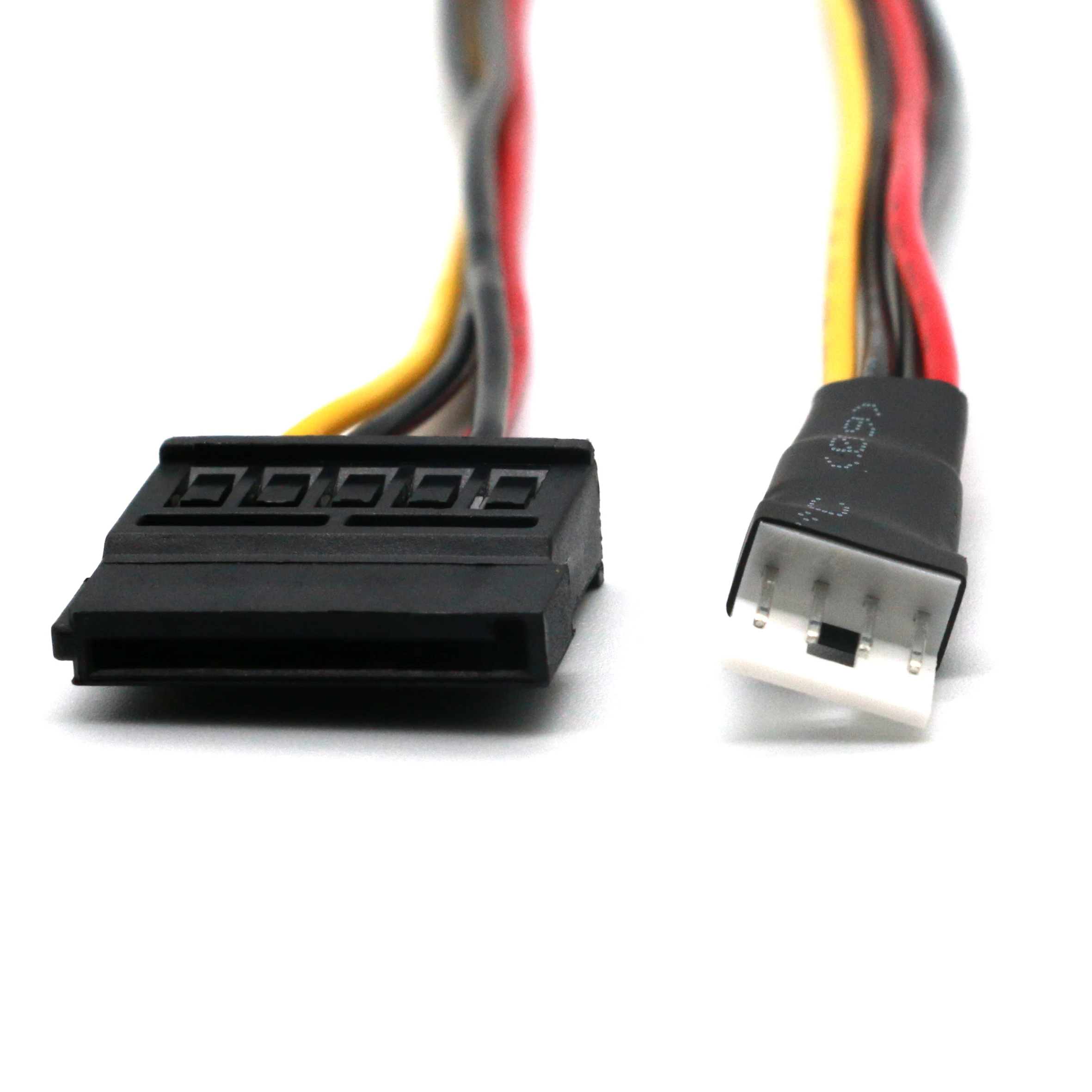 - Converts 4-pin floppy power connectors to 15-pin SATA power ports for easy device compatibility.