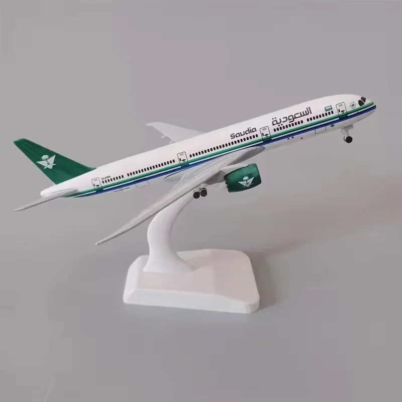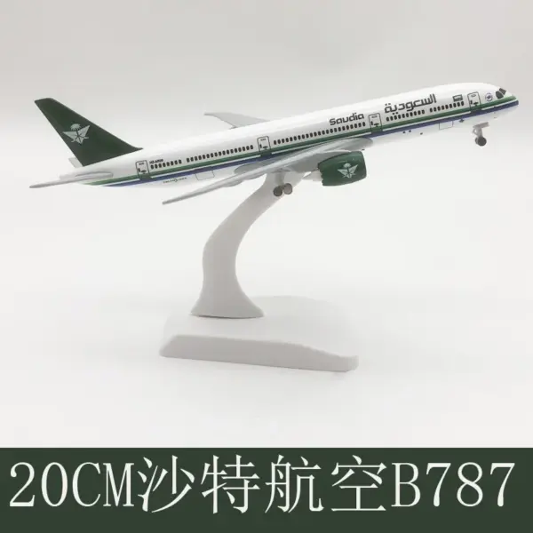 Imagine adding this beautifully crafted Saudi Arabian Airlines 20CM Diecast Airplane Model to your collection. This piece is more than just a model; it's a testament to the artistry of aviation design. Perfectly designed to reflect the authentic look of the B787 airplane, this diecast model is made from high-quality alloy and resin, ensuring durability. Just picture it displayed on your desk or shelf, captivating everyone who sees it. Whether for yourself or as a thoughtful gift for a fellow aviation enthusiast, this model is sure to impress with its stunning details and beautiful color scheme.