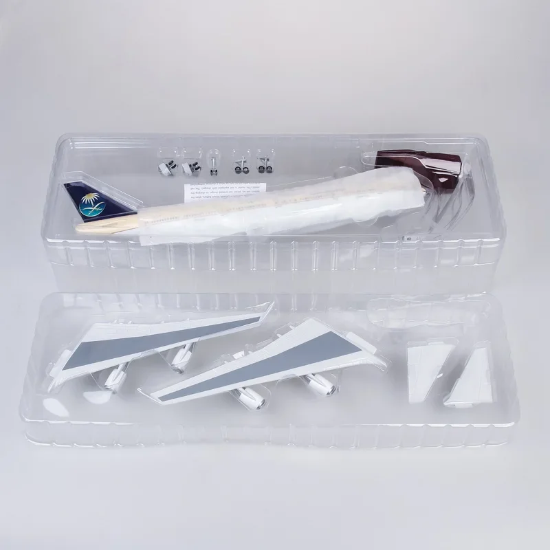 Bring this stunning aircraft model into your collection and enjoy the unparalleled craftsmanship and realistic details each time you admire it. Perfect for aviation enthusiasts and collectors, it elevates any display with its authentic design and innovative LED lighting. Whether as a centerpiece or a gift, this model promises to impress and inspire admiration. Don't miss out on owning a piece of aviation excellence—add this detailed SAUDIA Airlines B747-400 model to your collection today and enjoy its beauty every day.