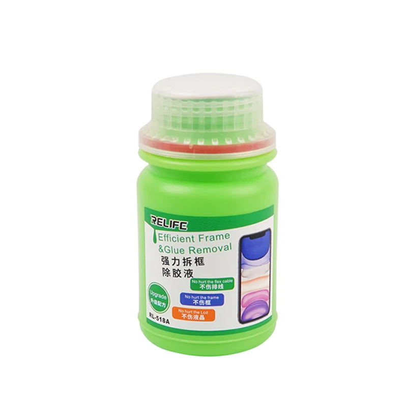 Experience effortless mobile phone repairs with the 250ML LCD Frame Glue Removal Liquid from SAYTL, expertly designed for disassembling curved screen frames without damage. This efficient removal solution helps you separate LCD frames with ease, ensuring a smooth repair process. The vibrant green cylindrical bottle features a user-friendly white and red domed lid with textured ridges for grip, making application simple. The label highlights “Efficient Frame & Glue Removal” in both English and Chinese, providing clarity on its purpose. Ideal for your computer tool kit, this essential liquid empowers you to tackle repairs confidently and effectively.