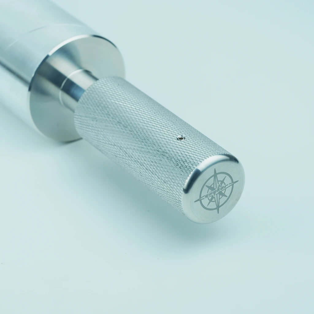 Experience precise guitar repair with this sleek aluminum alloy rolling pin sander, model SCDM. Crafted from durable, high-quality aluminum alloy, this hand-held sanding tool features a polished, reflective silver finish, a smooth cylindrical body with a subtle seam line, and an ergonomic textured knurled grip in a darker metallic tone. Designed for professional acoustic guitar maintenance, it requires no batteries and offers reliable, chemical-free performance. Its minimalist and modern design ensures comfort and control during delicate sanding tasks, making it an essential addition to any guitar technician or enthusiast’s toolkit for achieving expert-level results quickly and efficiently.