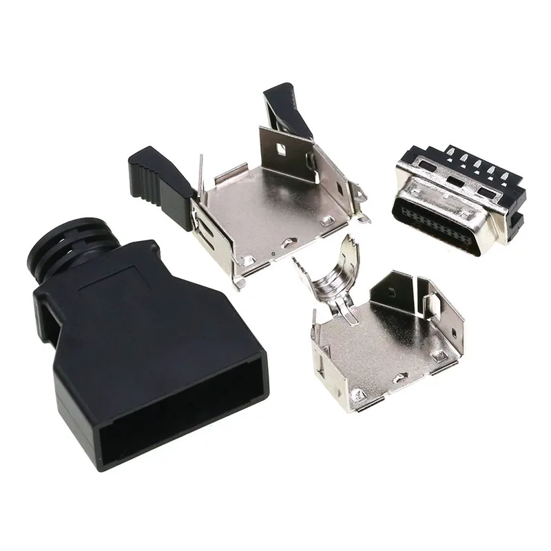 Experience a high-quality, durable, and reliable connection with this versatile SCSI servo drive connector. Designed with precision craftsmanship, it features a sleek rectangular black plastic body complemented by shiny metallic contact ports, ensuring excellent conductivity and resistance to corrosion. The rounded, ribbed strain relief cap offers enhanced grip and strain prevention, while textured thumbscrews provide a secure fit during installation. Available in multiple pin configurations—14P, 20P, 26P, 36P, and 50P—you can tailor it to fit your specific needs. Its plug-in soldering design and MDR shrapnel fixing guarantee a stable, high-performance link for your electronic systems. This connector combines practicality with a clean, industrial aesthetic, making it perfect for professional, high-reliability applications.