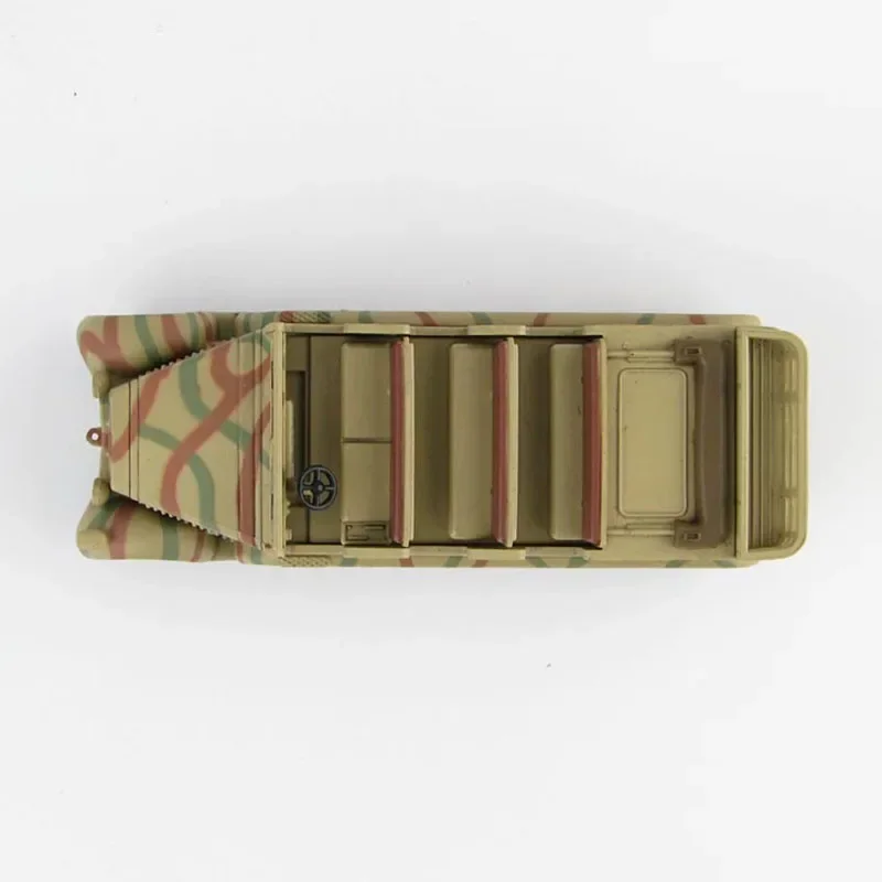 Immerse yourself in military history with this meticulously crafted diecast model of the Sd. Kfz. 7 G 8 Ton Half Track. Built entirely from durable metal alloy, this 1:72 scale replica showcases an authentic military design. Its vivid camouflage pattern combines sandy beige with irregular patches of green and reddish-brown, providing a realistic wartime appearance. Every detail from the textured surface to the molded components, such as the grille, headlights, and vertical slats along the cargo bed, has been carefully rendered to evoke the rugged functionality of the original vehicle. Perfect for collectors and enthusiasts, this model adds a touch of historical authenticity to your display space, whether on a desk, shelf, or office decor. Its matte finish and detailed craftsmanship make it an eye-catching, durable piece that celebrates military engineering.