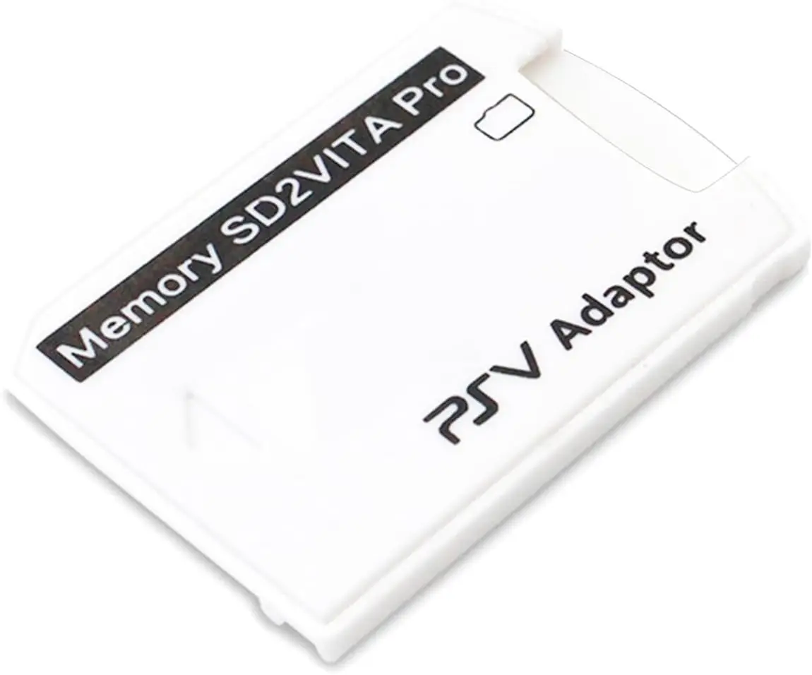 Enhance your PlayStation Vita experience with this sleek white SD2Vita Memory Card Adapter, compatible with PS Vita models 1000 and 2000, as well as PSTV. Designed for firmware 3.6 and above, including HENkaku or Enso systems, it replaces the original memory card slot with support for fast SD cards up to 256GB, significantly expanding storage capacity. Featuring a minimalist design with black printed icons and text for easy recognition, this adapter connects directly to the game slot, ensuring a simple and practical upgrade. Compatible with Sony devices, it requires separate SD cards and game systems, offering a reliable solution for gamers seeking enhanced storage performance.