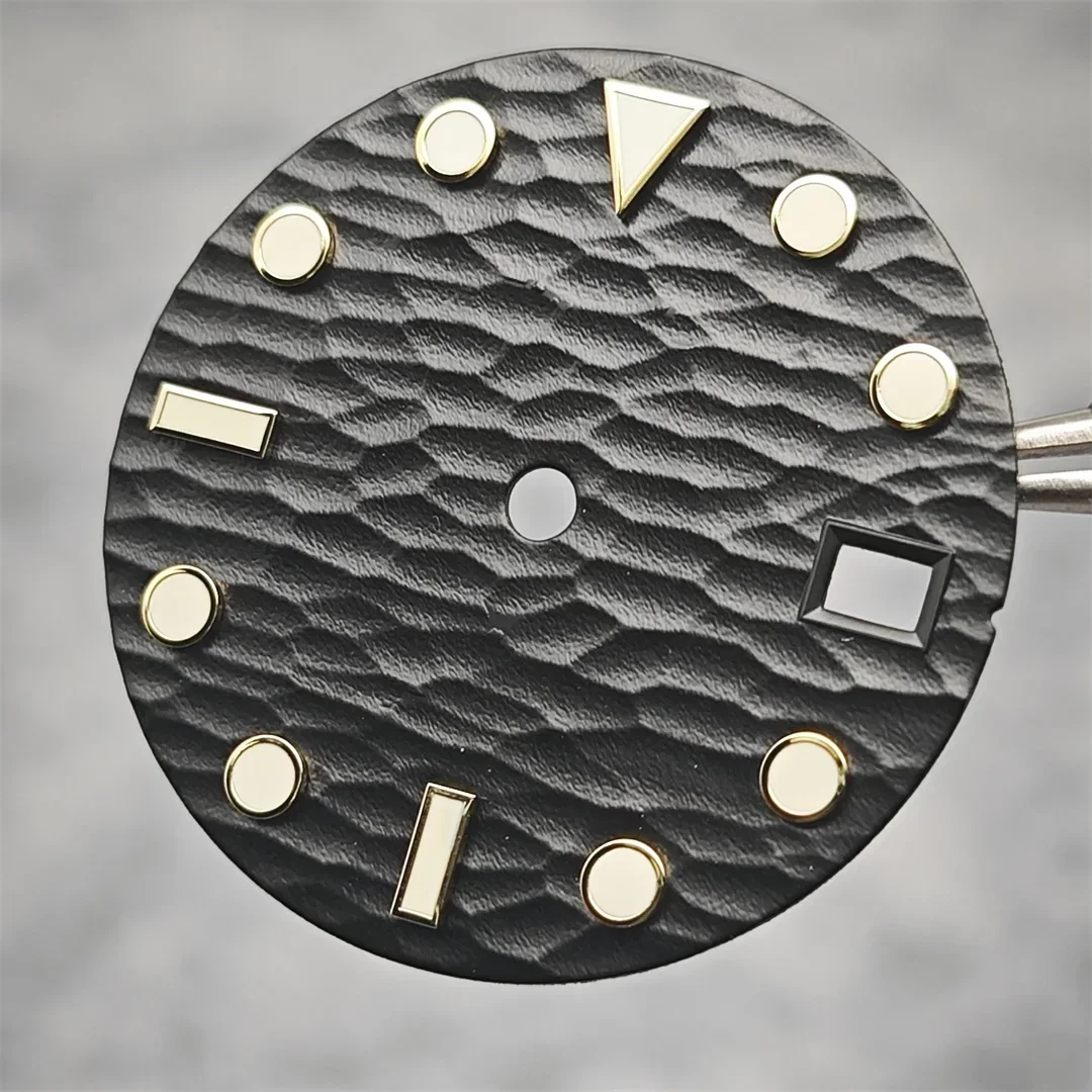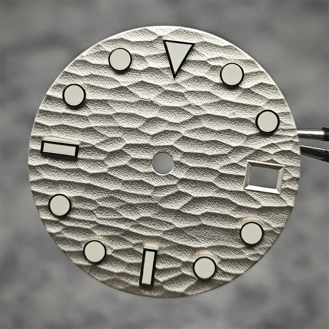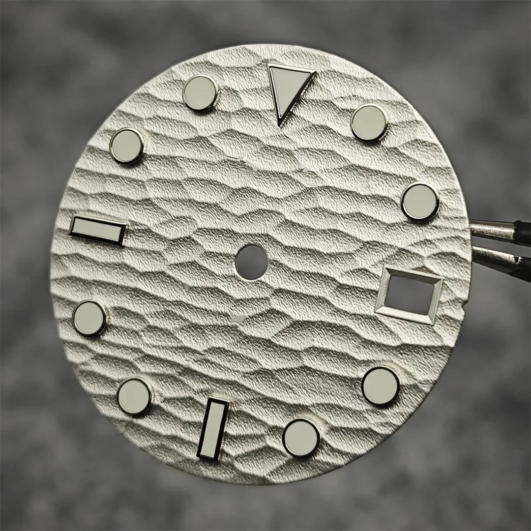 Experience the elegance and craftsmanship of this 28.5mm MDNEN watch dial, designed for NH35, NH36, 4R, and 7S movements. Featuring a stunning textured sea wave pattern surface in a vibrant green luminous finish, it showcases Arabic numeral markers, a round stainless steel construction, and a versatile design suitable for unisex wear. The dial’s durable build and luminous accents ensure both style and functionality, perfect for custom watch enthusiasts aiming to elevate their timepieces. Available in multiple color options, including black gold, black silvery nail, light blue, light green, and white, this high-quality replacement dial combines aesthetic appeal with precise technical compatibility.