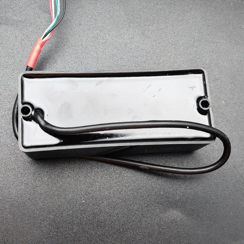 Upgrade your bass guitar with this Sealed Soapbar 4-String Humbucker Pickup, measuring 89.5 x 37.5mm, featuring a durable plastic cover with a sleek matte black finish. Equipped with a ceramic magnet and a resistance of 11-12KΩ, it delivers deep, powerful bass tones. The double coil humbucker design includes four shielded wires (white, black, green, red) for versatile wiring options, while the included two screws and springs ensure hassle-free installation. Weighing approximately 180 grams, this high-quality pickup is perfect for enhancing sound clarity and volume on 4-string bass guitars, making it a reliable upgrade for professional musicians and enthusiasts alike.