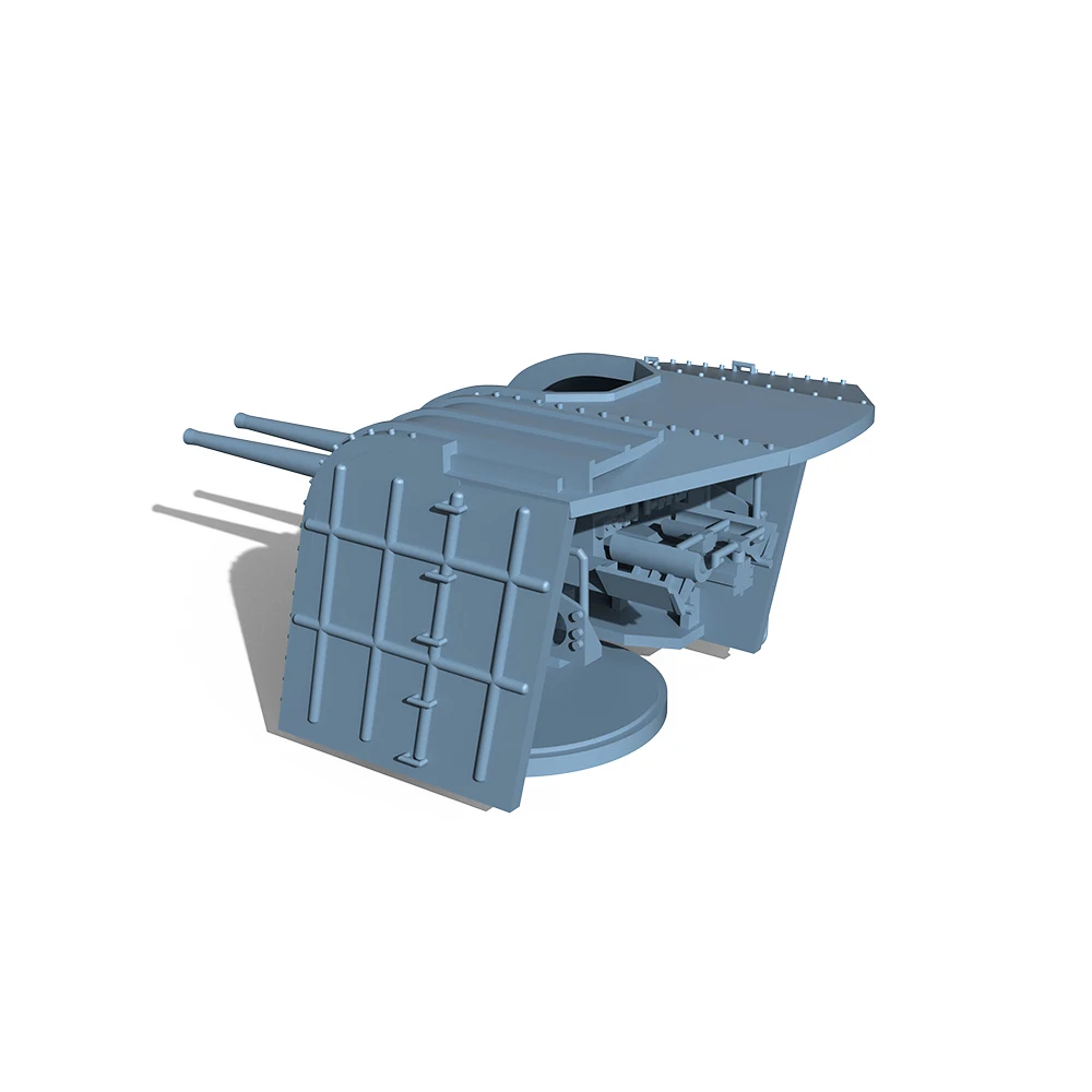 The Secondary Gun Upgrade Kit for the Japan Mogami Heavy Cruiser is a meticulously crafted model made from high-quality resin. It features a sleek matte light blue finish, with a smooth cylindrical barrel extending from a sturdy rectangular base. The gun’s design includes a curved rear profile for seamless integration with the mounting system, along with grid-like detailing and subtle panel lines for added realism. This kit is compatible with ship models in scales 1/144, 1/200, 1/350, and 1/700, making it a versatile choice for enhancing model collections. Suitable for enthusiasts aged 14 and older.