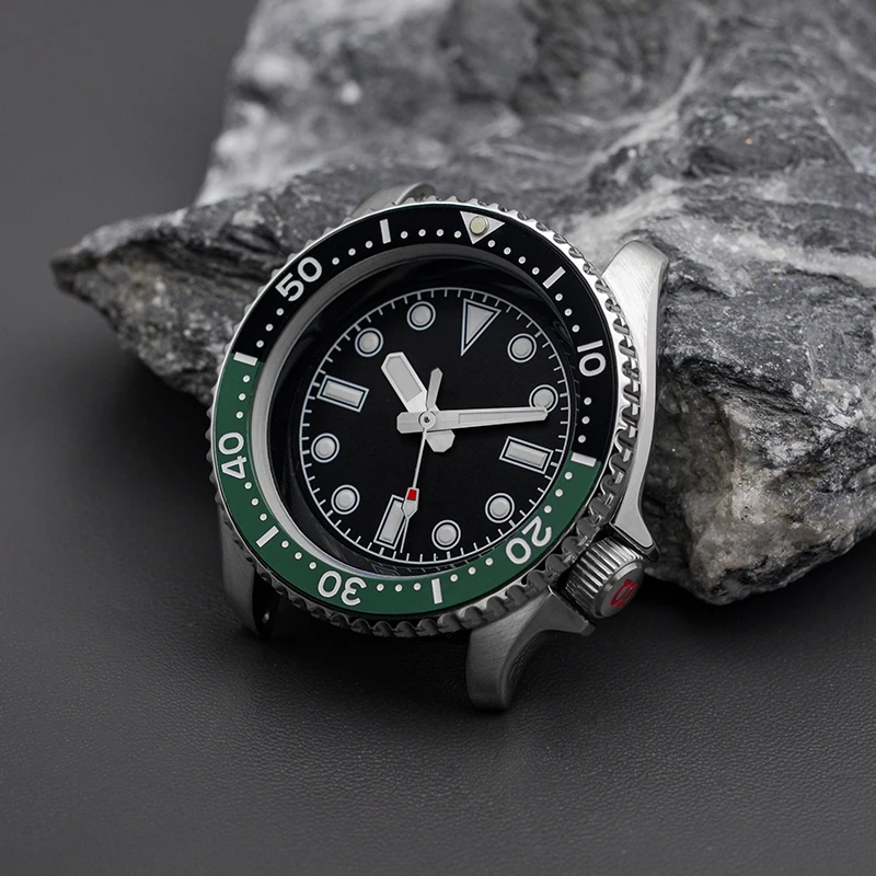 Experience the rugged sophistication of the SKX007 dive watch with its 42mm stainless steel case featuring a brushed and polished finish, complemented by a black unidirectional bezel with white markers and a red triangle at 12 o’clock. The large 28.5mm dial is equipped with bright green Super Luminous C3 markers and hands for superior visibility underwater or in low light. Powered by a reliable NH35/NH36 automatic movement, it offers 200 meters of water resistance, a scratch-resistant sapphire crystal, and a secure screw-in back and crown at 3.8 o’clock. With a 44mm overall length and 22mm lug width, this timepiece combines durability, style, and precision perfect for any adventure.