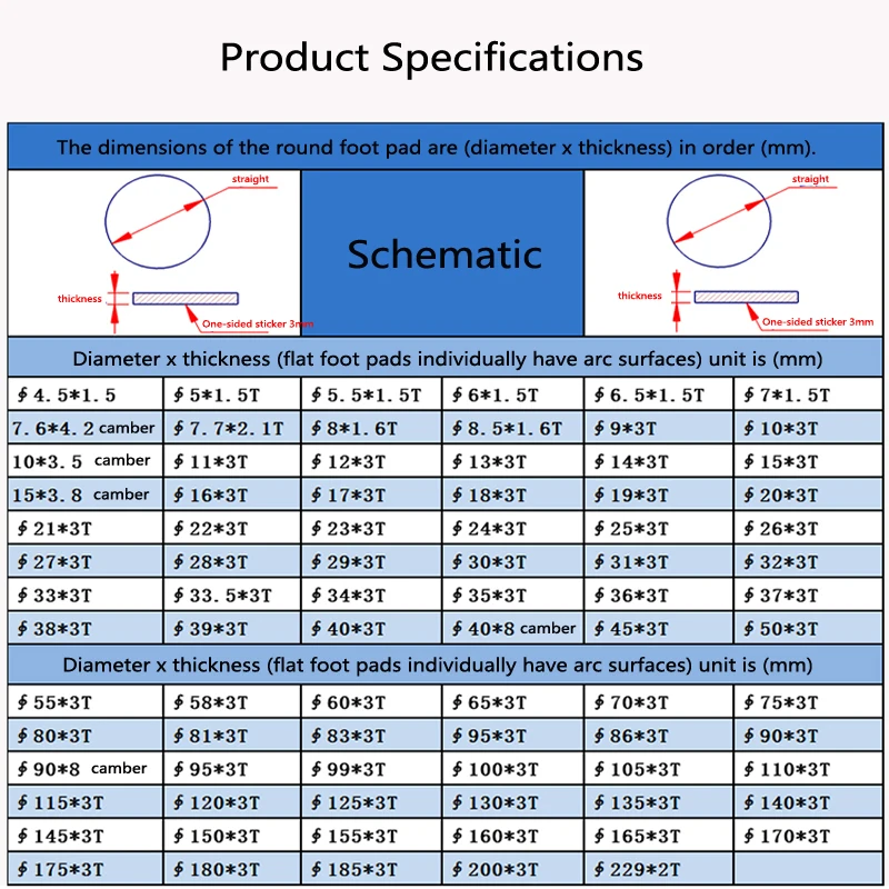 Self-Adhesive Silicone Rubber Foot Pads 4.5-55mm