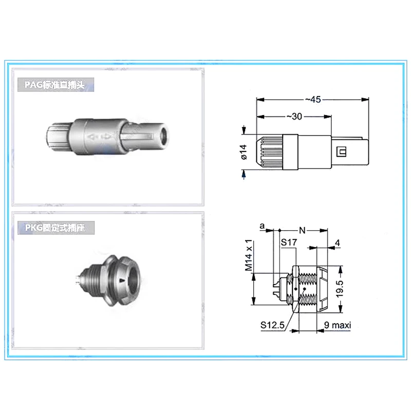 Experience reliable connectivity with this versatile self-locking aviation plug-in connector, available in 1P configuration and compatible with 2 to 14 pins, including 10P and 14P options, making it ideal for medical device applications. Its quick plug design ensures fast, secure connections, while the M14 hole allows easy mounting. The connector features a robust cylindrical build with ridged grip sections for secure handling and a sleek, modern appearance in three variants: plug, socket, and set. Customizable voltage options, durable construction, and high-quality materials ensure long-lasting performance in demanding environments, providing you with peace of mind and dependable performance in your critical applications.