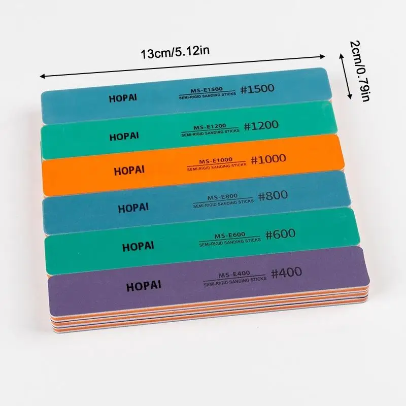 - Set includes six sanding sticks with grit grades #400, #600, #800, #1000, #1200, and #1500 for versatile polishing options.