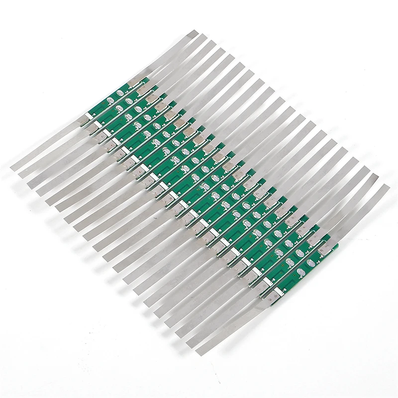 Experience peace of mind with this set of ten 3A BMS PCB protection boards, meticulously designed for 3.7V 18650 lithium-ion batteries. Crafted with precision, each board features a high-quality “precision” main IC capable of safeguarding your batteries against overcharge, over-discharge, short circuits, and overcurrent risks. Its compact, organized layout showcases a vibrant green PCB surface dotted with tiny surface-mount components, highlighting technical excellence and durable craftsmanship. Connecting effortlessly via labeled terminals—B+, B-, P+, and P-—these boards integrate seamlessly into your projects, ensuring reliable and stable performance. Whether you’re building a custom power bank or a portable device, this set provides the essential protection components to keep your batteries safe and working at optimal capacity.