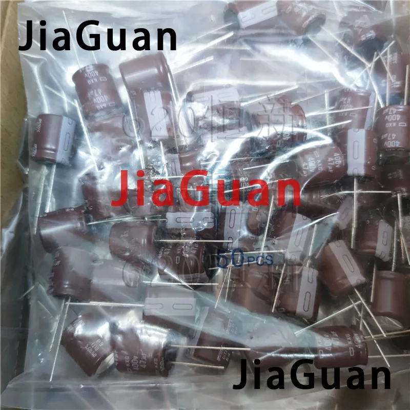 - Set includes ten aluminum electrolytic capacitors, each with 47µF capacitance and 400V voltage rating for high-performance power applications.