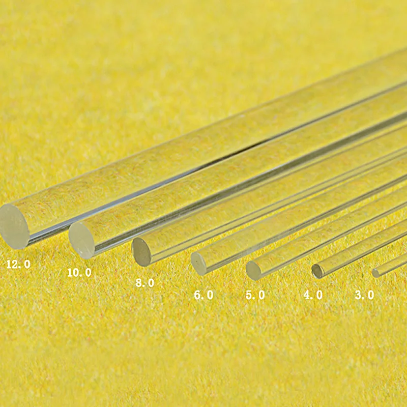 Enhance your craft projects with this set of 10 transparent acrylic solid round rods, each measuring 25 cm in length. These high-quality rods come in various diameters: 2mm, 3mm, 4mm, 5mm, and 6mm, showcasing a high-gloss finish that provides exceptional clarity and smoothness. Made from organic glass (acrylic/plexiglass), they are ideal for architectural models, sand table models, and train models, scalable at 1:1. Experience the versatility and beauty these rods bring to your creative endeavors, perfect for bringing your models to life! Some size variation may occur due to manual measurement.